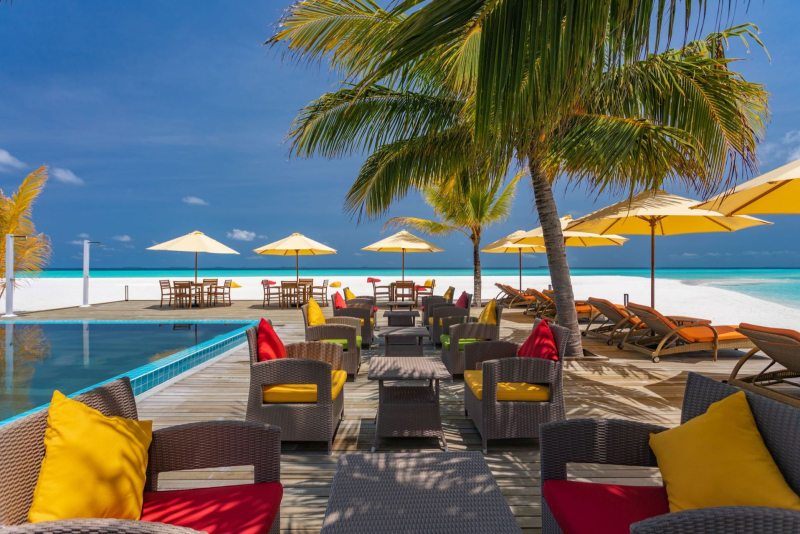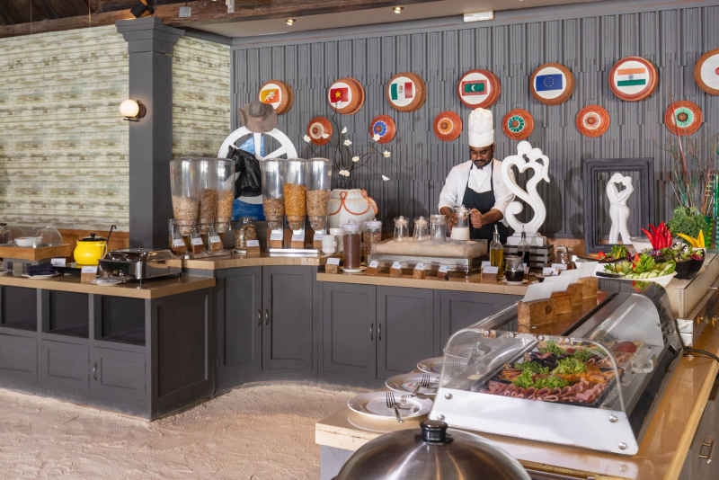 Das Resort bietet zwei exzellente Restaurants, ein Buffetrestaurant 'Dhandifulhu' mit internationaler Küche und ein À-la-carte-Restaurant/Meeresfrüchtespezialitätenrestaurant 'Athiri'. Je nach gebuchter Verpflegungsoption können Gäste Frühstück, Mittagessen, Abendessen und Zwischenmahlzeiten genießen. Getränke, sowohl alkoholische als auch alkoholfreie, sind ebenfalls im Angebot.Ausstattung