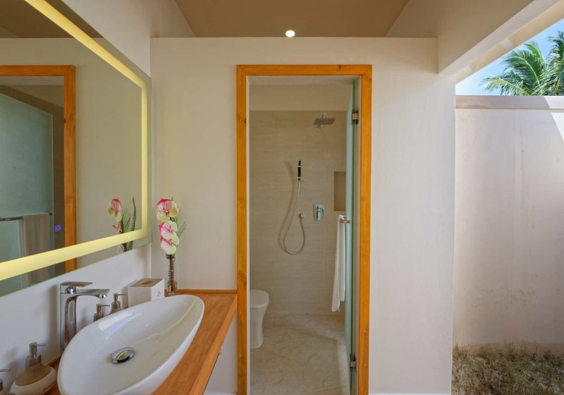 Brennia Kottefaru bietet 187 Villen mit klaren Kategorien. Bougain Villa (ca. 58 m²) als Einstieg, Beach Villa (ca. 111 m²) mit direktem Strandzugang, Beach Villa Pool (ca. 122 m²) mit privatem Pool. Über dem Wasser wohnt Ihr in der Water Villa (ca. 82 m²), alternativ Ocean Pool Villa (ca. 95 m²) oder Deluxe Water Villa (ca. 105 m²) auf der Sonnenuntergangsseite.