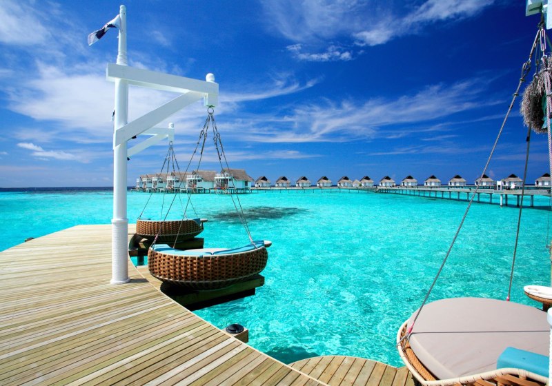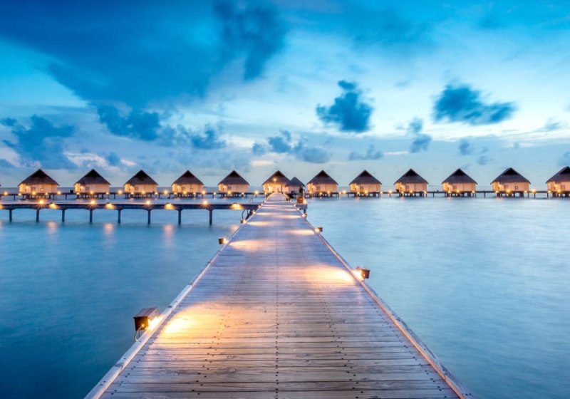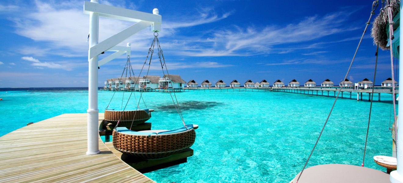 - Meerblick: Wasservillen auf Stelzen öffnen den Blick auf die Lagune.