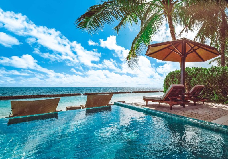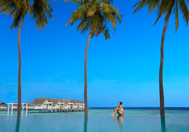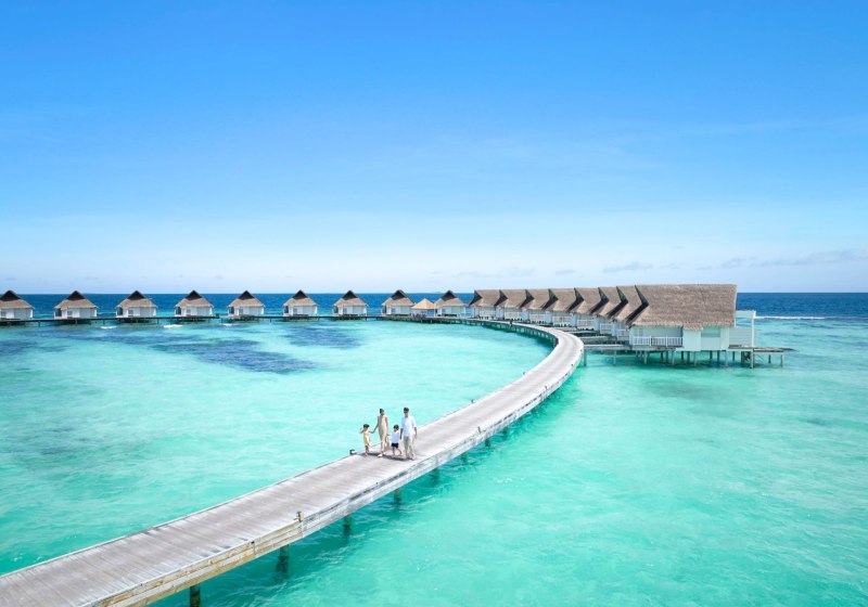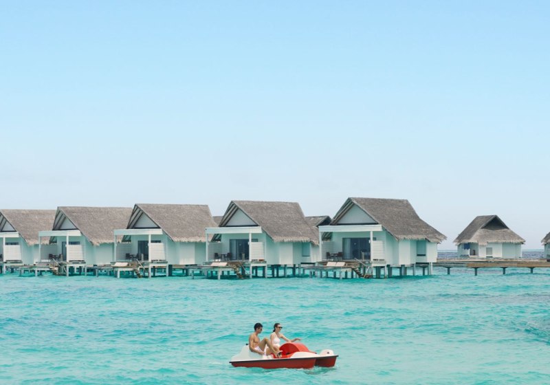 Ihr wählt zwischen Duplex Beach Villas in doppelstöckigen Bungalows (ca. 87 m²) und Wasservillen auf Stelzen über dem Meer (ca. 93 m²). Einige Wasservillen verfügen über einen privaten Whirlpool. Alle Kategorien bieten eine möblierte Terrasse für luftige Pausen zwischen Sonne und Schatten.