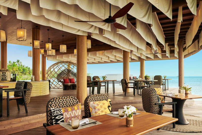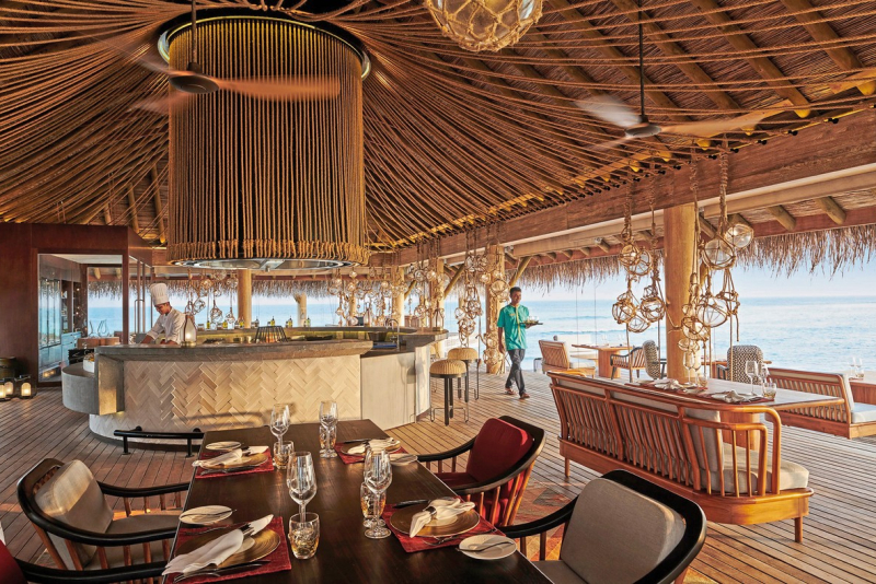 In puncto Gastronomie überzeugt das Sirru Fen Fushi Private Lagoon Resort mit Diversität. Insgesamt drei Restaurants stehen zur Verfügung: Das 'Azure' bietet Meeresfrüchtespezialitäten, das 'Kata' japanische Küche und das 'Raha Market' Buffets für Frühstück, Mittag- und Abendessen. Genießen Sie den ganzen Tag über Getränke an der 'Onu Onu'- Poolbar, oder 'Azure'-Bar.Ausstattung