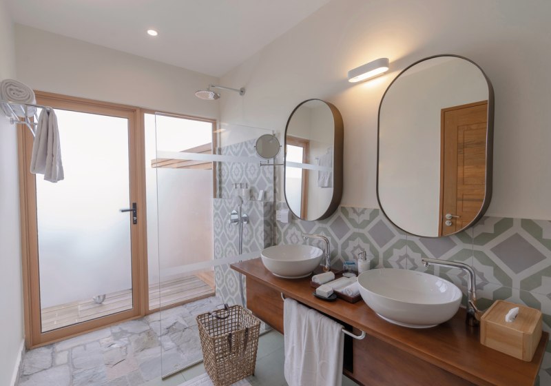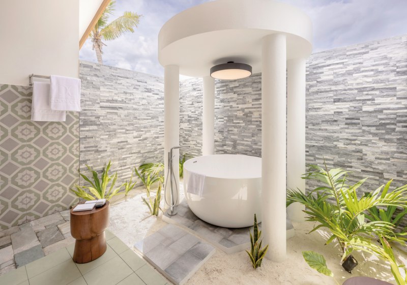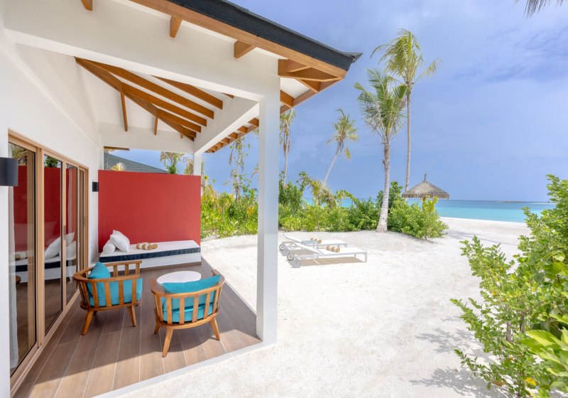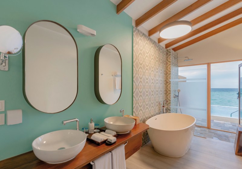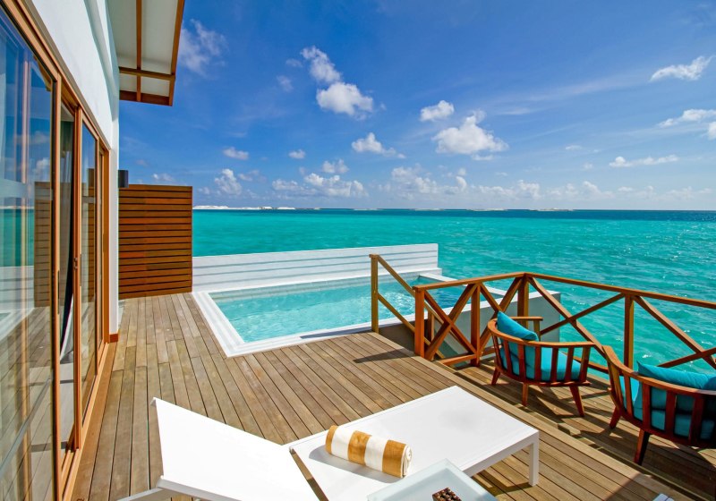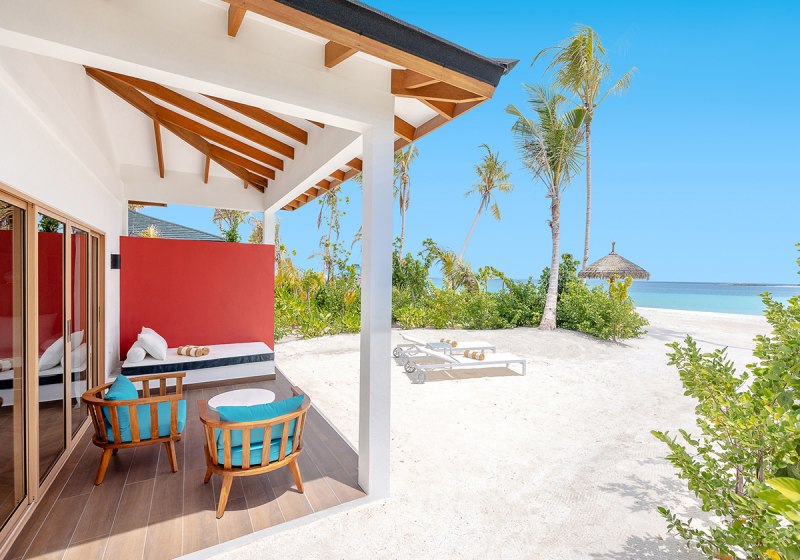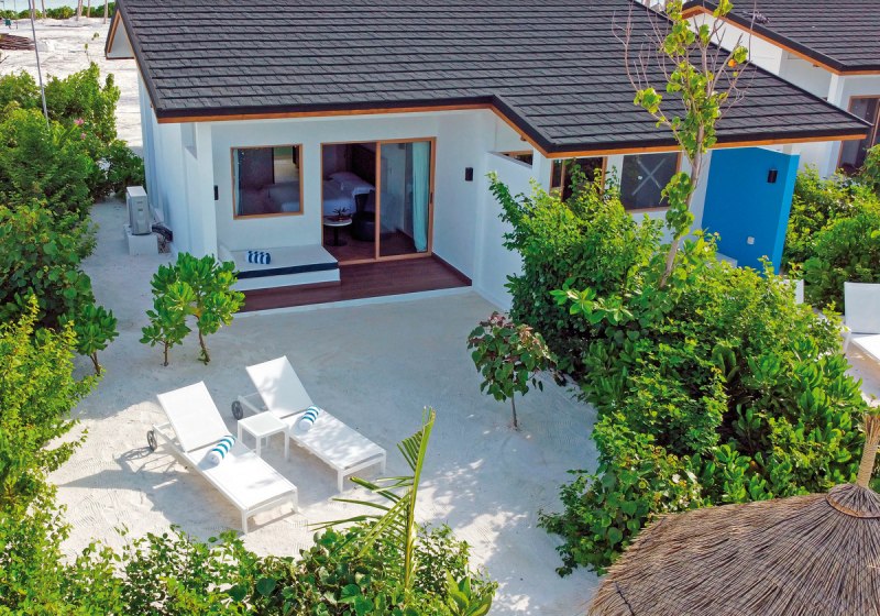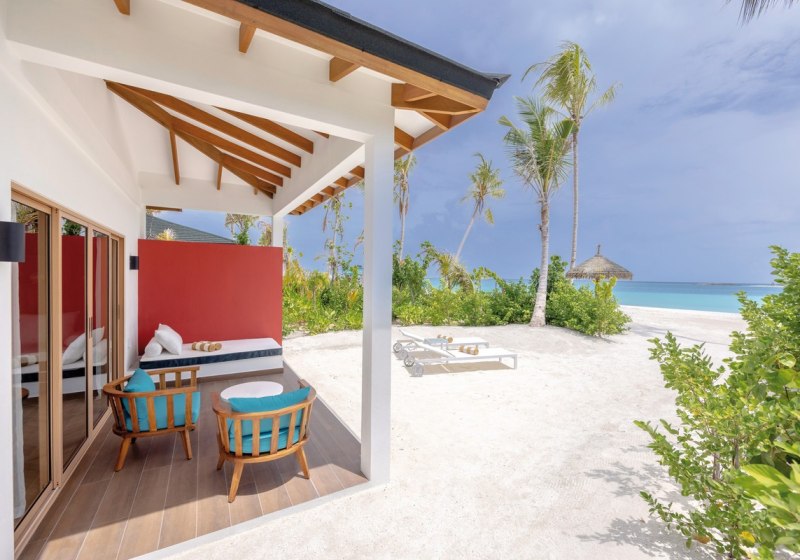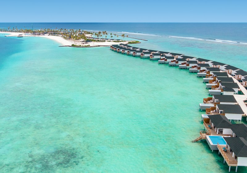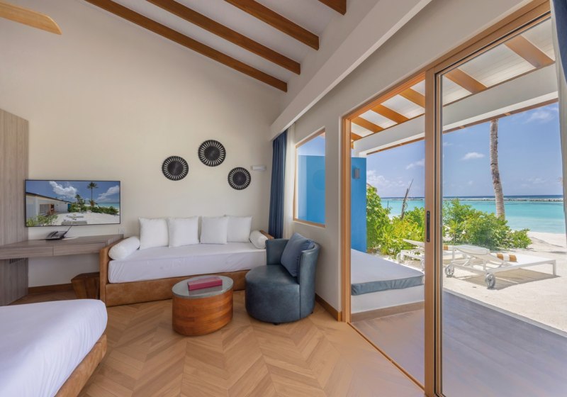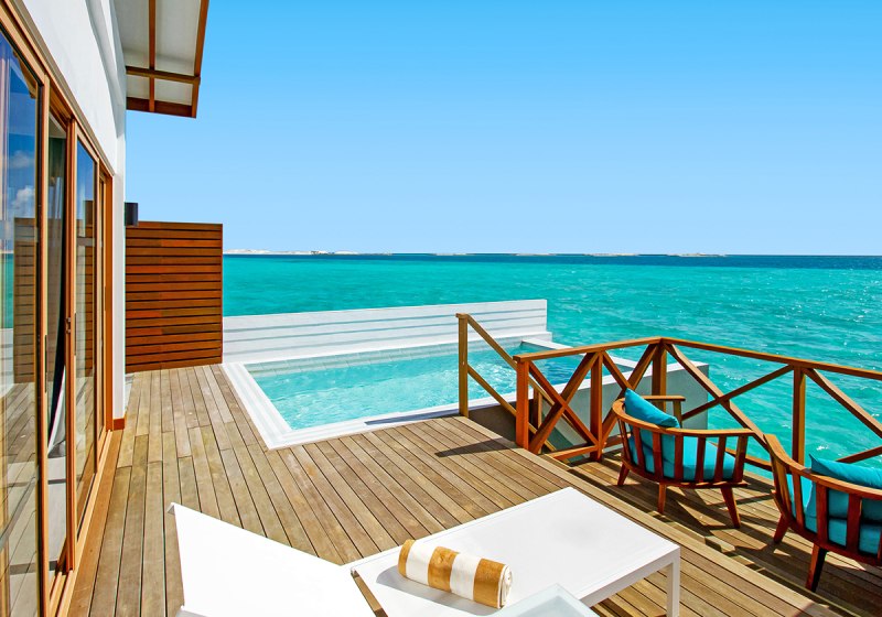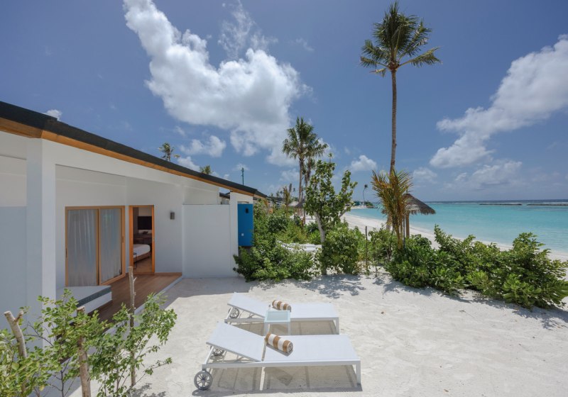 Die 151 Villen verteilen sich auf Land- und Überwasserkategorien mit klarem Mehrwert. Beach Villen (ca. 50 m²) bieten eine Terrasse und den direkten Zugang zum Strand – ideal, wenn Ihr den Tag am Wasser startet. Beach Suiten (ca. 70 m²) liefern mehr Fläche; ausgewählte Einheiten verfügen über einen privaten Pool für zusätzliche Privatsphäre und Ruhe.