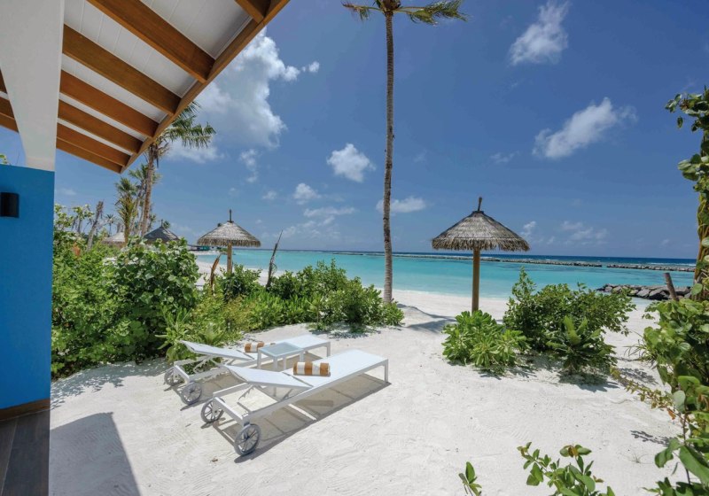 Joy Island empfängt Euch auf dem östlichen Außenriff des Nord-Male-Atolls mit einer klaren Idee: viel Raum, durchdachte Rückzugsorte und direkte Wege zum Meer. 2023 eröffnet, wirkt alles frisch, gut organisiert und stimmig verzahnt – von der Rezeption über die Lounge bis zum Strand. Ihr wohnt in Strand- oder Überwasservillen mit definierten Vorteilen: direkter Strand- oder Meerzugang, private Terrassen und aufgewertete Details je Kategorie. Die Atmosphäre ist entspannt, aber strukturiert, mit verlässlichen Services und kurzen Abstimmungen im Alltag.