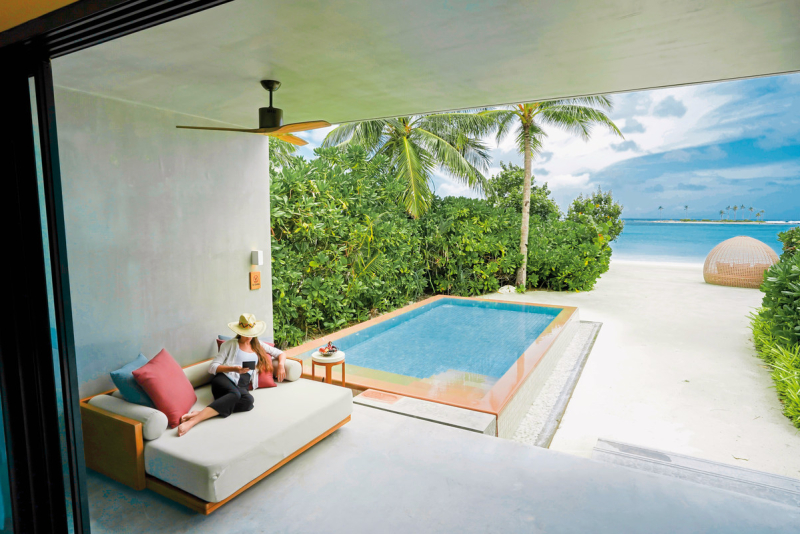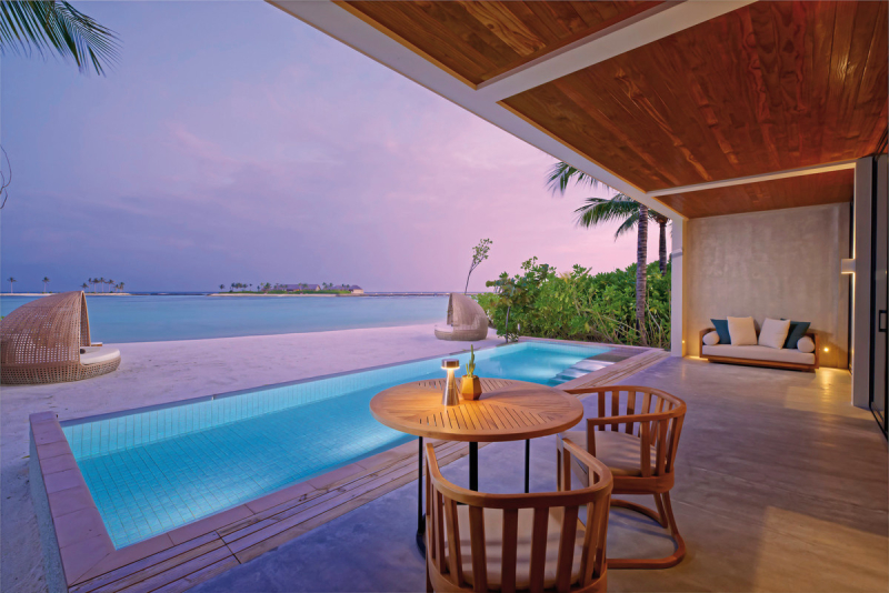 Das Kuda Villingili liegt auf einer einsamen Insel im Nord-Male-Atoll, mit malerischem Sandstrand nur wenige Schritte entfernt. Der Transfer vom Flughafen zum Hotel ist bequem und dauert nur etwa 30 Minuten mit dem Schnellboot.