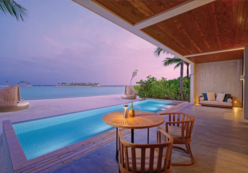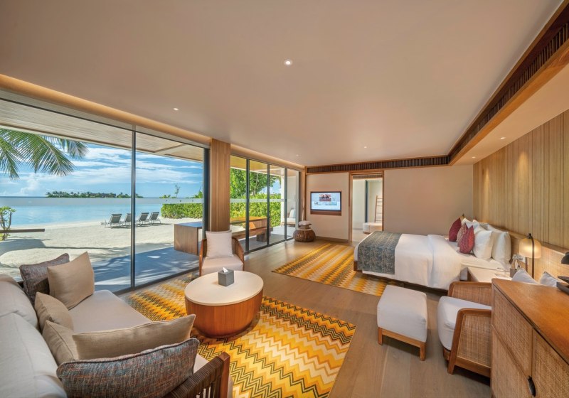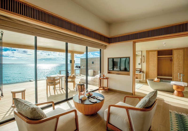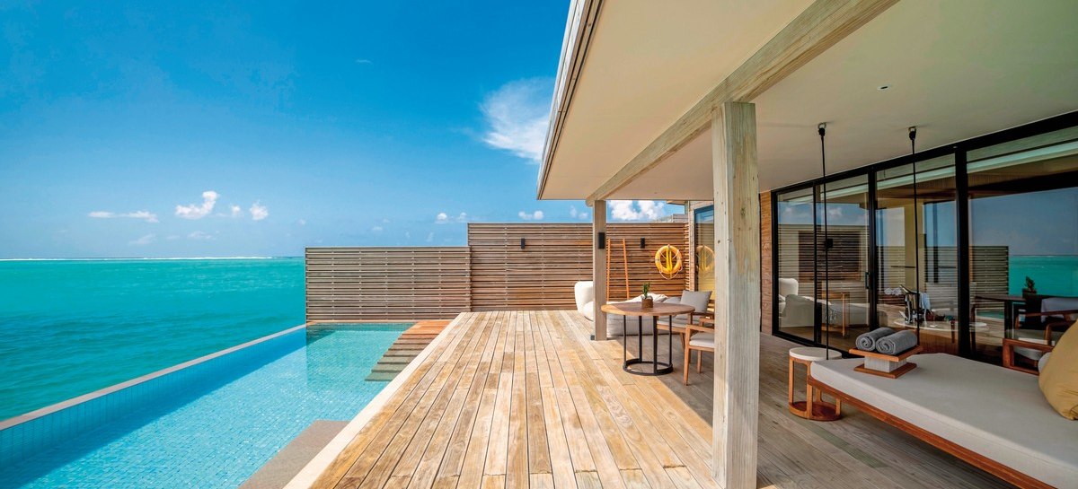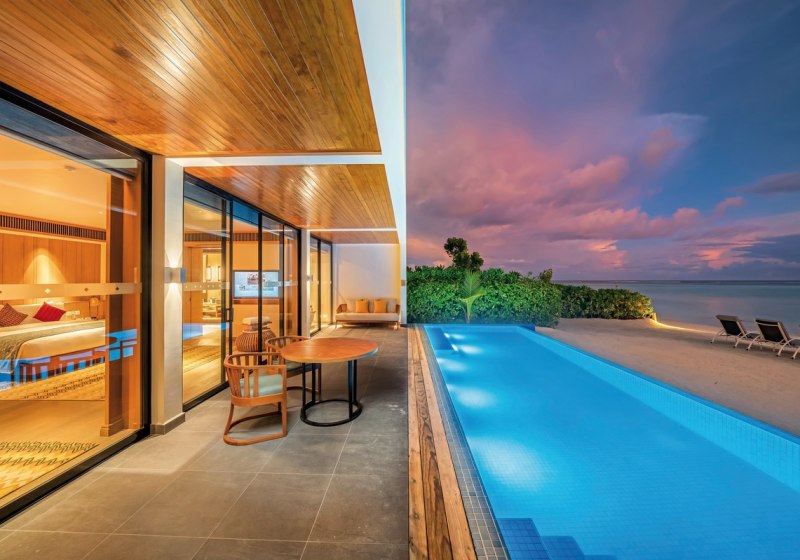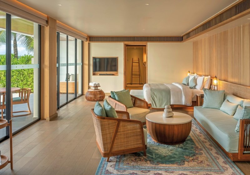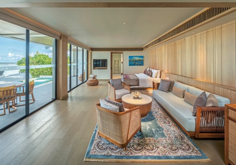 Alle Villen verfügen über eine möblierte Terrasse. Wasservillen bieten direkten Meerzugang und Hängematten über dem Wasser. Strandvillen punkten mit direktem Strandzugang, Außendusche und Fahrrädern. Familienzimmer sind verfügbar. Das Design setzt auf Raum und Funktion, mit klaren Linien und kurzen Wegen ins Freie. Highlight: Private Pools je nach Villentyp erweitern den Wohnbereich um diskrete Erholung.