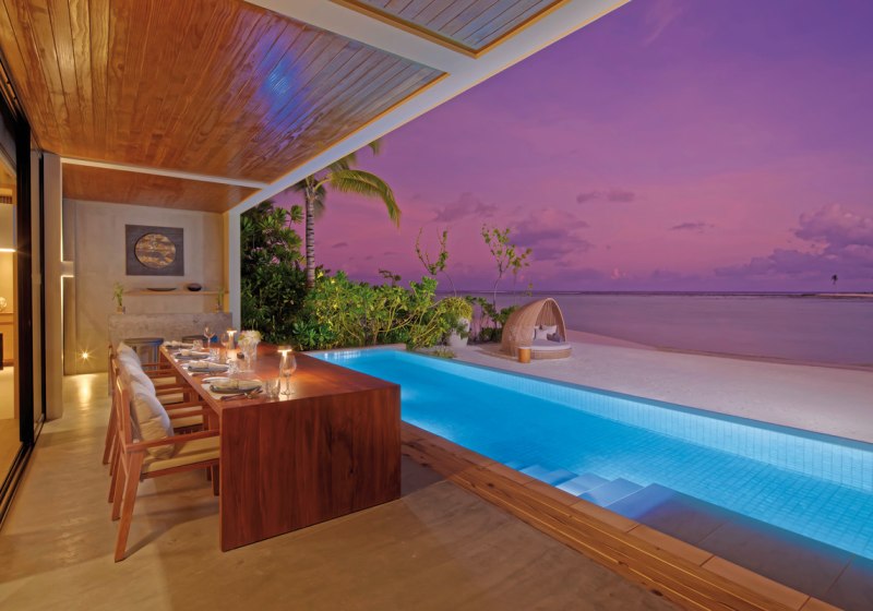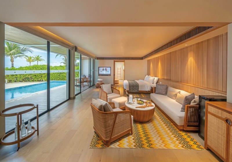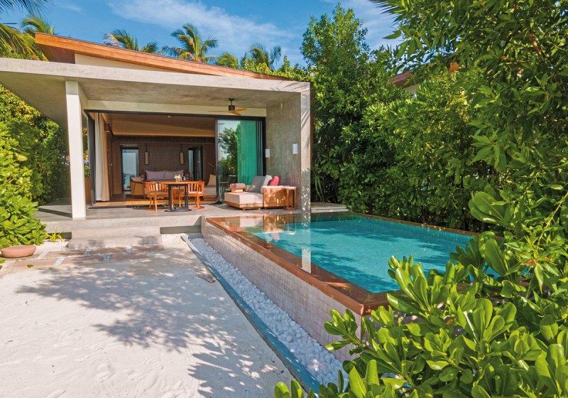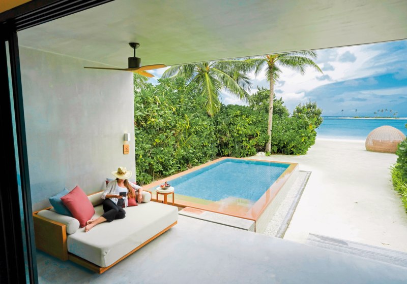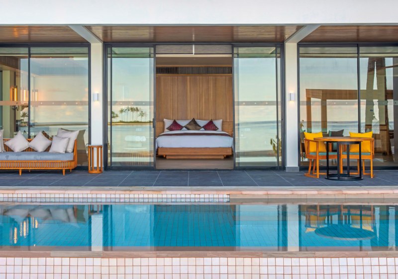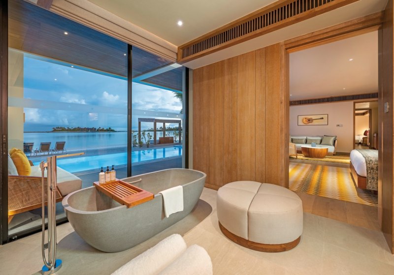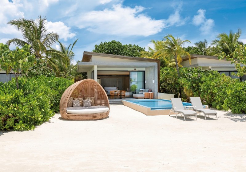 Alle Villen verfügen über eine möblierte Terrasse. Wasservillen bieten direkten Meerzugang und Hängematten über dem Wasser. Strandvillen punkten mit direktem Strandzugang, Außendusche und Fahrrädern. Familienzimmer sind verfügbar. Das Design setzt auf Raum und Funktion, mit klaren Linien und kurzen Wegen ins Freie. Highlight: Private Pools je nach Villentyp erweitern den Wohnbereich um diskrete Erholung.