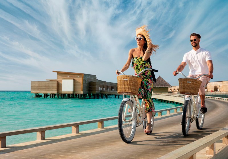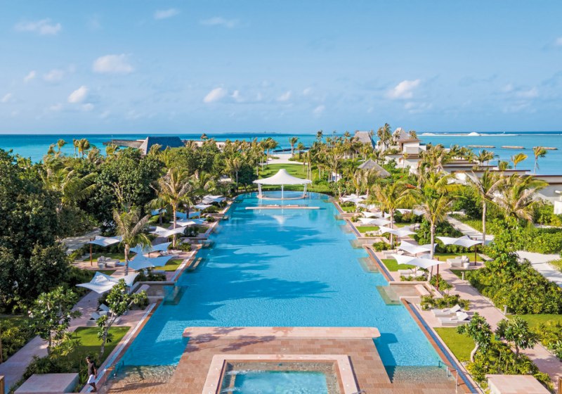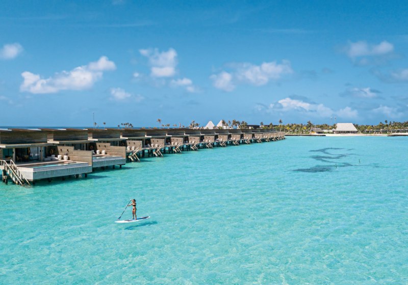 Die Atmosphäre ist ruhig, mit Raum für Paare, Familien und Hochzeitsreisende. Ihr entscheidet, ob Ihr am Strand verweilt oder aktiv werdet: Tennis, Volleyball, Fitnessstudio oder sanfte Runden im Kajak und auf dem Stand-up-Paddle-Board. Abends stimmen Themenabende und gelegentliche Live-Musik auf einen gelungenen Ausklang ein. Highlight: Weitläufige Villenauswahl an Strand und über Wasser, ergänzt durch einen 150-Meter-Pool.