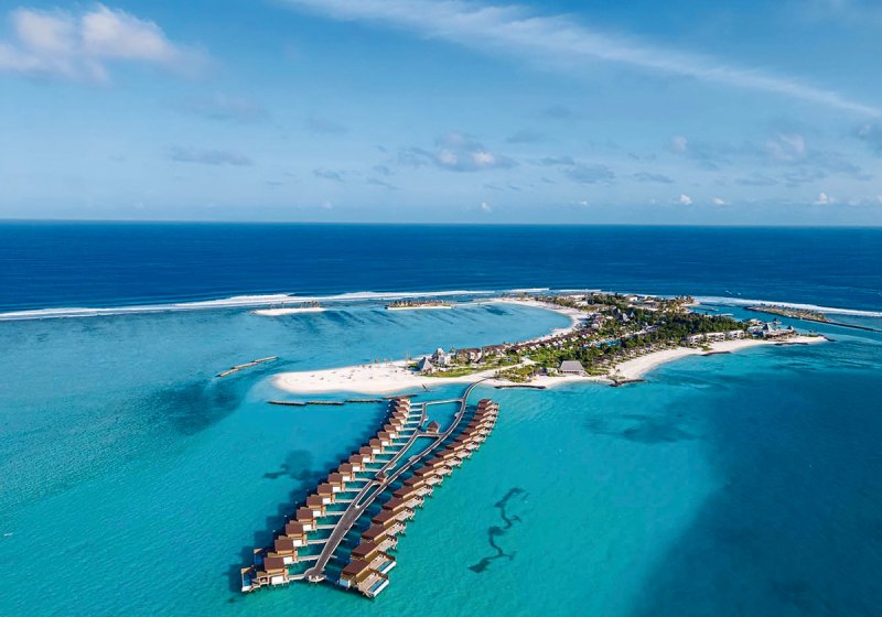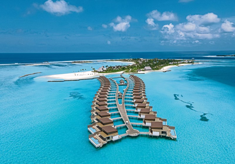 Kuda Villingili empfängt Euch auf dem östlichen Außenriff des Nord-Male-Atolls, auf einer Insel von etwa 750 Metern Länge und 190 Metern Breite. 75 Villen an Land und über dem Wasser prägen das Bild. Ein 150 Meter langer Swimmingpool zieht sich als klare Linie durch die Anlage. Butler-Service in allen Villen, kostenfreies WLAN und ein offener Empfangsbereich sorgen für einen strukturierten, entspannten Start in Eure Tage.