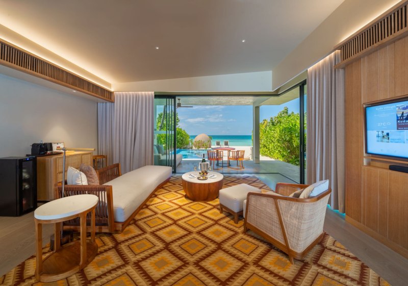 „Für stilvolle Auszeiten im Urlaub überzeugt Kuda Villingili mit strandnahen Villen, verlässlichem Butler-Service, einem 150-Meter-Pool und vielfältiger Küche – ideal, wenn Ihr Ruhe, Struktur und dezente Unterhaltung schätzt.“