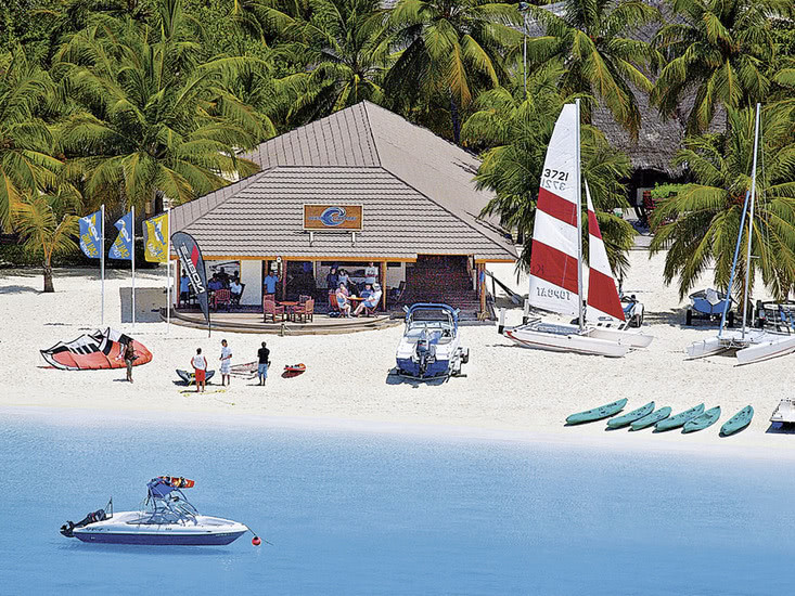 - Tauchen: Deutschsprachige PADI-Basis mit Zugang zu Atoll-Spotvielfalt.