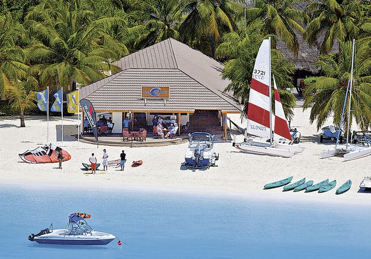 Aktive Stunden beginnen im klimatisierten Fitnesscenter oder auf dem Tennis-Hartplatz mit Flutlicht. Auf der Golfanlage setzt Ihr präzise Akzente zwischen Palmen und Meerblick. Die deutschsprachige PADI-Tauchbasis öffnet Hausriffe und Spots im Atoll; Schnorcheln ergänzt den Blick in die Lagune für ruhige Entdeckungen.