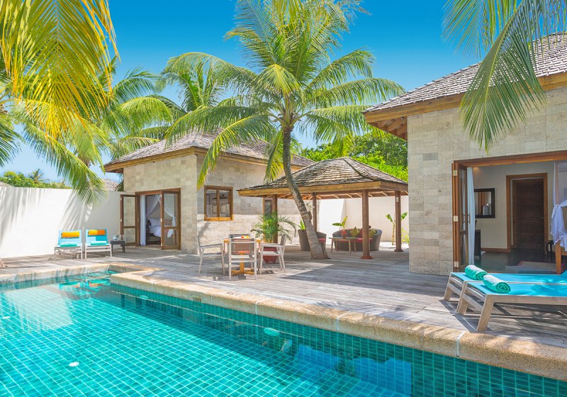 Jacuzzi Strand Villas (ca. 78 m² inkl. Außenbereich) ergänzen den Privatbereich um einen Whirlpool. Wasser Villen (ca. 70 m² inkl. Außenbereich) thronen auf Stelzen über der Lagune mit privatem Sonnendeck und direktem Meerzugang; Mindestalter 15 Jahre, kein Außenbad. Villa Private Pool (ca. 287 m² inkl. Außenbereich) bietet einen etwa 40 m² großen Pool. Im O-Bereich gilt ein Mindestalter von 12 Jahren, im Sangu-Bereich 15 Jahre. Highlight: Klare Kategorien vom Garten bis zur Lagune, präzise zugeschnitten auf unterschiedliche Vorlieben.