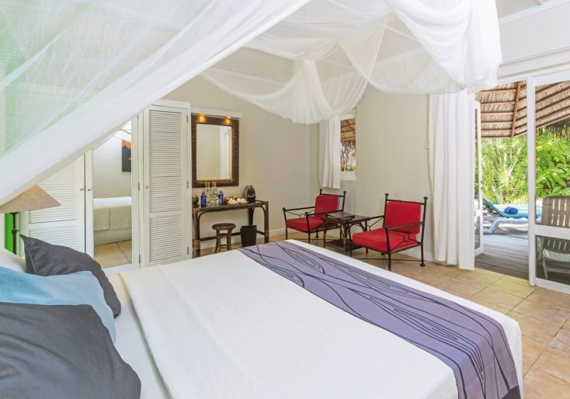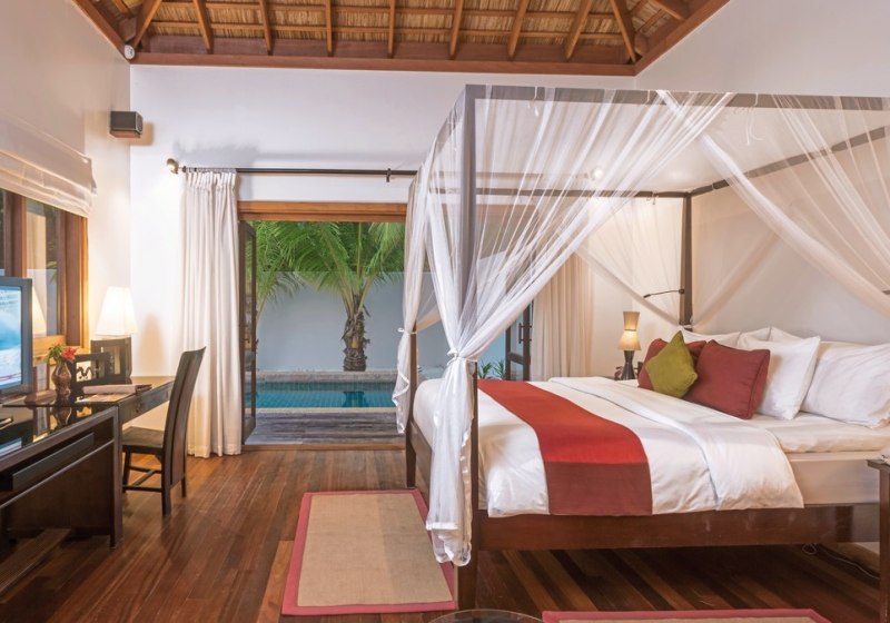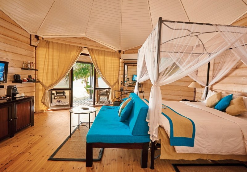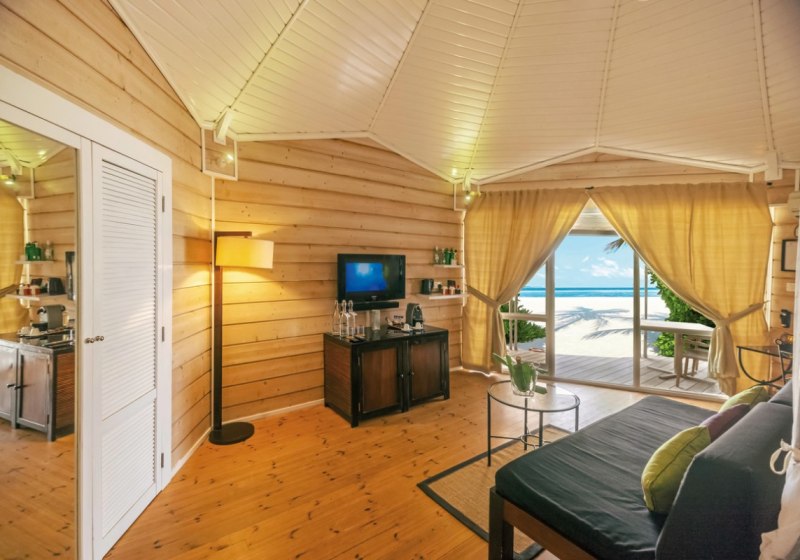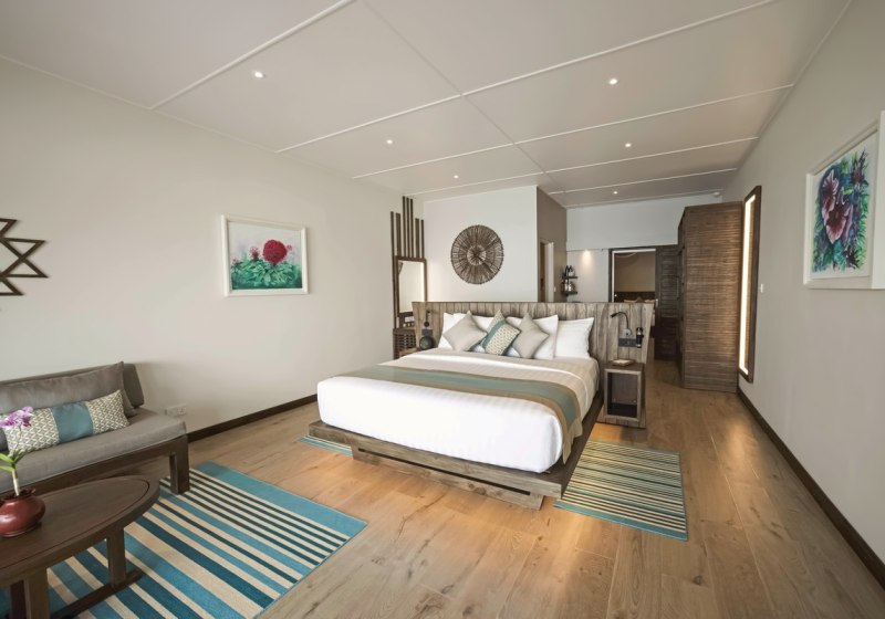Die Insel bietet eine breite Auswahl an Kategorien mit klaren Profilen. Garten Bungalows (ca. 54 m²) verbinden Terrasse und Bad mit Außendusche; Strand Bungalows positionieren Euch mit Terrassen und direktem Strandzugang. Beach Villas (ca. 57 m² inkl. Außenbereich) verfügen über halb-offene Bäder und TV, Premium Beach Villas liegen auf der Südseite im Koamas-Bereich.