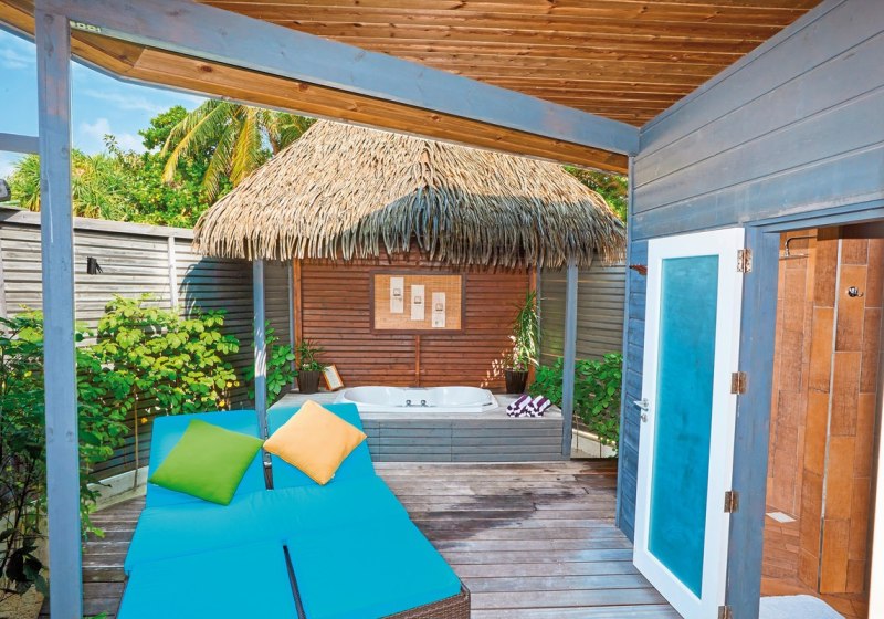 - Lagunenblick: Wasser Villen mit Sonnendeck und direktem Meerzugang.