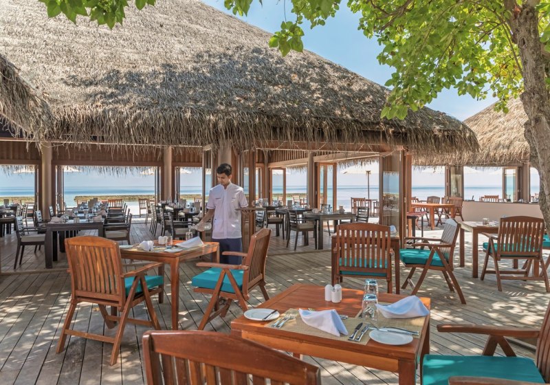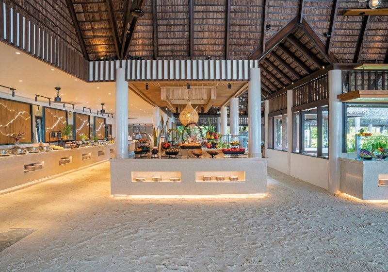 Im Dhonveli erwartet Euch ein vielseitiges Buffet, während das Raahlu den Fokus auf Fisch und Meeresfrüchte legt. Das Madivaru ergänzt mit À-la-carte-Erlebnissen, darunter Teppanyaki am Tisch. Zwei Bars – Raalhu und Thundi – rhythmisieren den Tag vom Nachmittagsdrink bis zum abendlichen Ausklang.