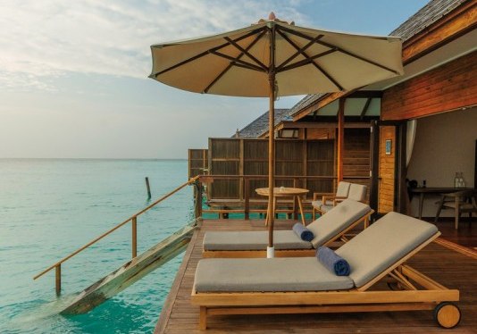 - Überwasserstil: Stelzenvillen mit direktem Zugang ins Meer in ausgewählten Kategorien.