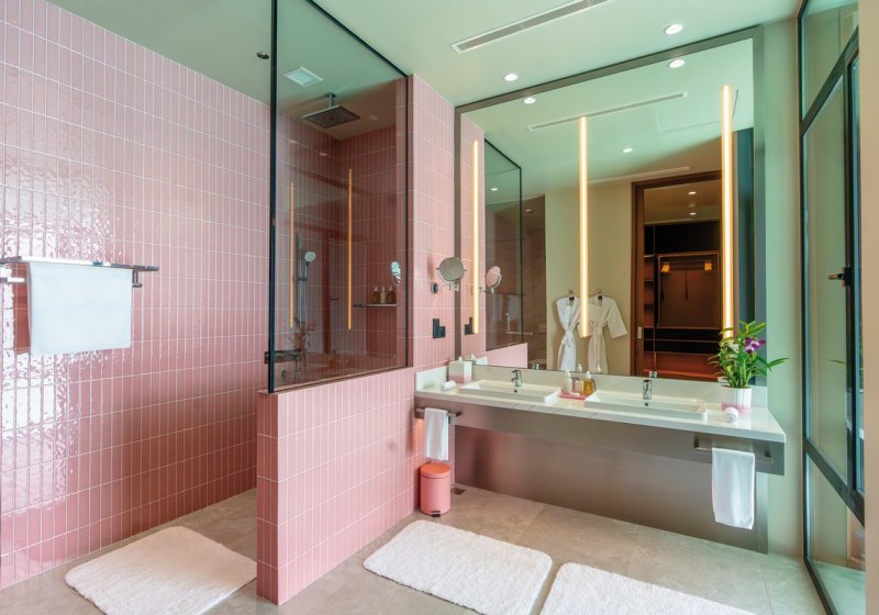 - Halboffenes Bad: Ausgewählte Villen mit Regendusche unter freiem Himmelgefühl.