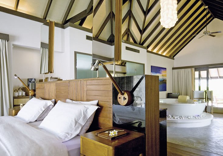 Die Island Villen bieten rund 188 Quadratmeter Raumgefühl: Schlafzimmer mit Wohnbereich, halb-offenes Bad mit Innen- und Außendusche, Badewanne und WC. Sat-TV, DVD-Player, Safe, Minibar und Klimaanlage sind ebenso an Bord wie eine Espresso-Maschine. Draußen warten möblierte Terrasse, Sonnenliegen, privater Pool und Tagesbett.