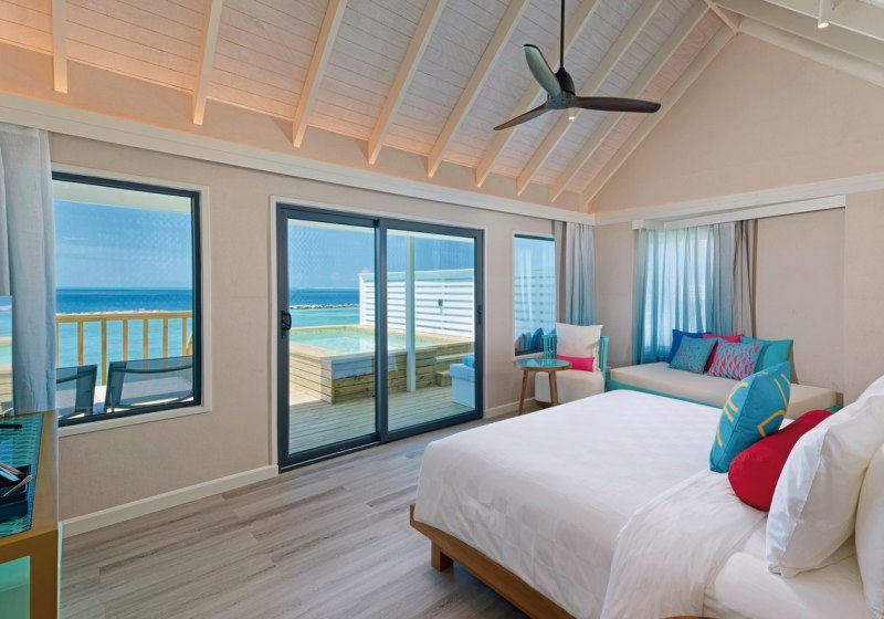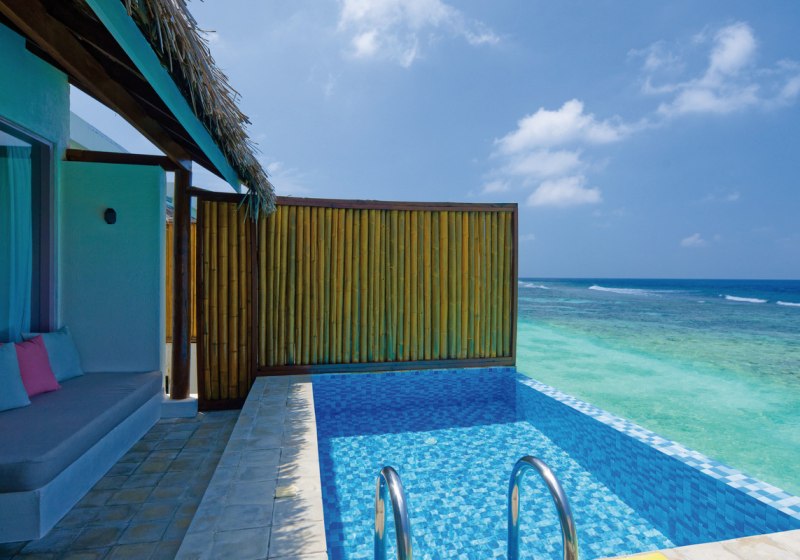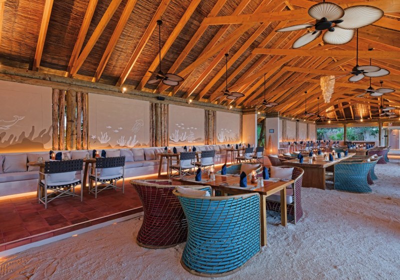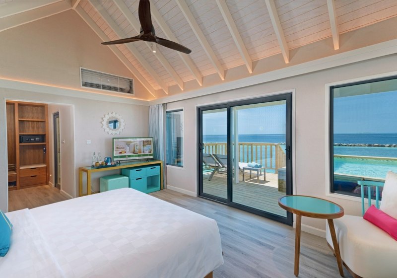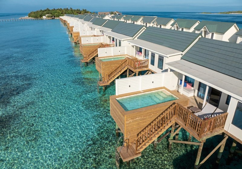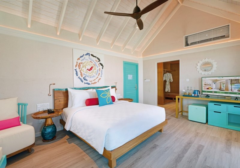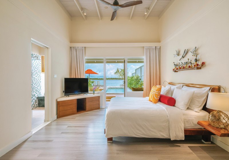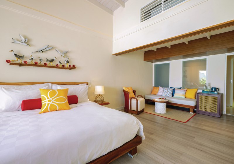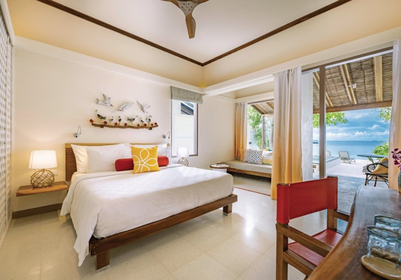 Die Minibar wird täglich mit Softdrinks und Wasser aufgefüllt. Je nach Kategorie geniesst Ihr Meerblick, direkten Strandzugang oder wohnt über Wasser in Stelzen-Bungalows. Familien wählen die 2-Schlafzimmer-Villa mit Verbindungstür und zwei Bädern. Jede Einheit punktet mit möblierter Terrasse – ideal für ruhige Momente nach dem Strand.