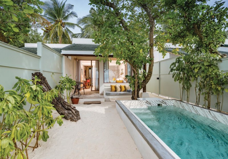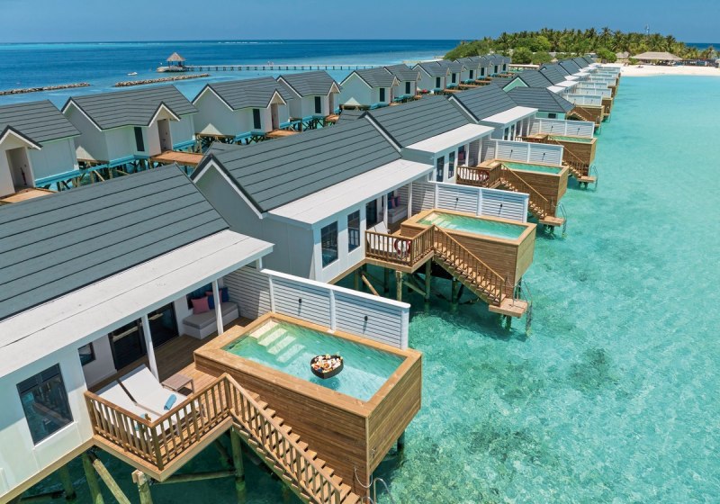 Auf der kleinen Insel Helengeli im Nord Male Atoll erwartet Euch Sentido OBLU Helengeli direkt am Sandstrand. Die Atmosphäre ist entspannt und klar strukturiert: kurze Wege, zwei Pools – einer davon exklusiv für Erwachsene – und viel Zeit am Wasser. Das Hausriff liegt nur wenige Flossenschläge entfernt und prägt das Gefühl von Nähe zum Meer. Ihr wohnt in Villen, teils freistehend, teils als Doppelhaushälfte, einige mit Privatpool.