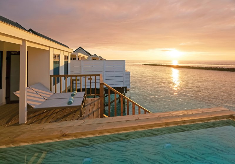 • Über dem Meer: Stelzen-Bungalows bieten Wohnen direkt über dem Wasser.