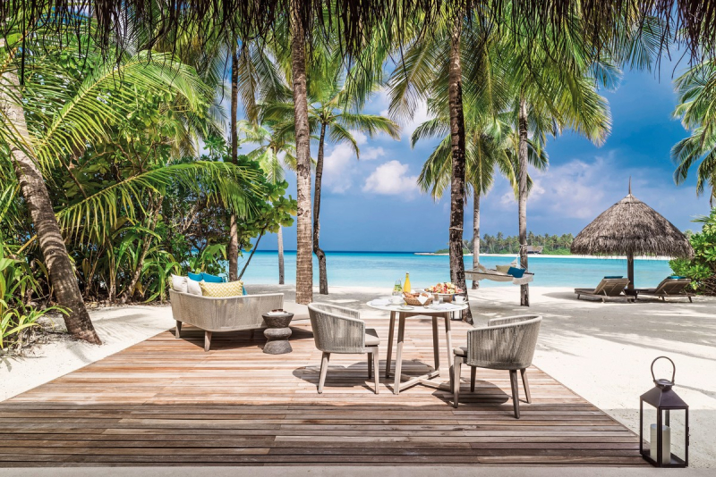 Das Resort liegt direkt am Strand, auf einer atemberaubenden Insel namens Reethi Rah, die sich durch feinsandige, lange weiße Sandstrände auszeichnet. Mit einem Schnellboot ist das Resort in etwa 45 Minuten vom Flughafen aus erreichbar. Die Insel ist großzügig angelegt, was den Gästen ausreichend Platz für Privatsphäre bietet.