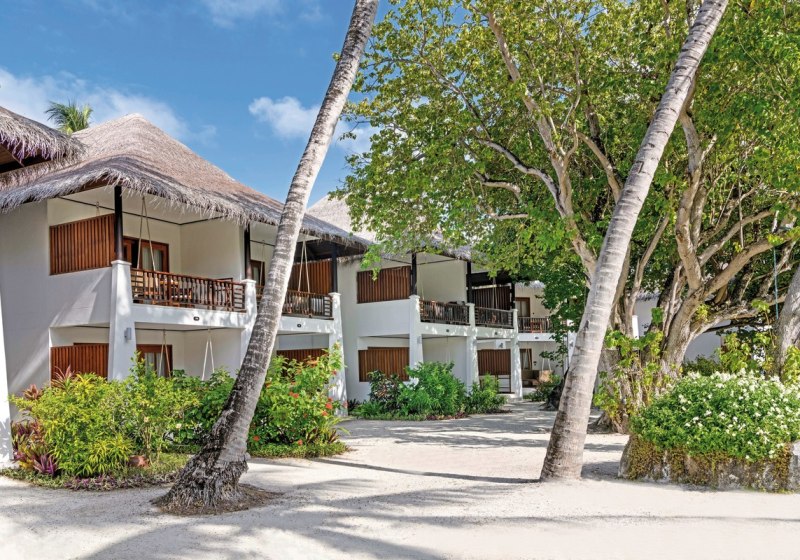 Beachfront Deluxe führen Euch direkt an den Strand. Island Cottages (ca. 76 m²) setzen auf halb-offenes Bad mit Außendusche; Beachfront Cottages kombinieren direktem Strandzugang, Meerblick und möblierte Terrasse. Die Wasserbungalows stehen auf Stelzen über der Lagune und bieten direkten Zugang ins Wasser. So wählt Ihr zwischen Gartenruhe, Strandnähe oder Lagunenfokus, jeweils mit funktionaler Ausstattung. Highlight: Überwasserbungalows mit direktem Lagunenzugang für unmittelbares Meergefühl.