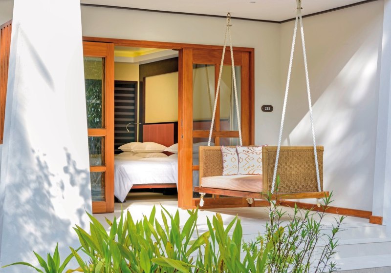Die Zimmerlandschaft bietet klare Wahlmöglichkeiten. Deluxe Zimmer (ca. 56 m²) liegen in einstöckigen Bungalows und verfügen über Bad mit Wanne/Dusche/WC, individuell regulierbare Klimaanlage oder Deckenventilator, 40-Zoll-LCD-TV mit internationalen Sendern, CD-Player, Safe, Kaffee-/Teezubereiter sowie Minibar (gegen Gebühr). Balkon oder Terrasse mit Hängeschaukel öffnen den Blick ins Grüne oder Richtung Strand.