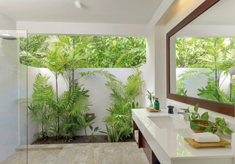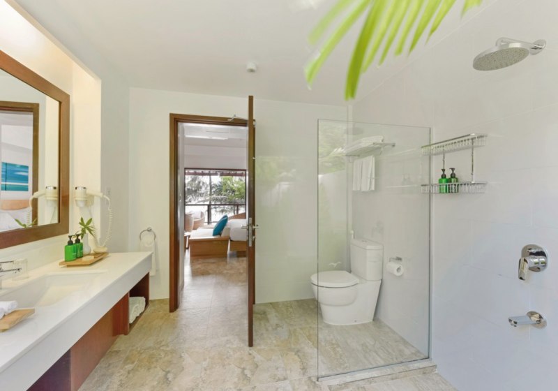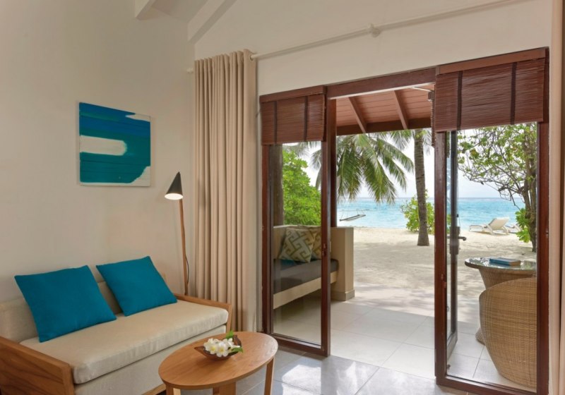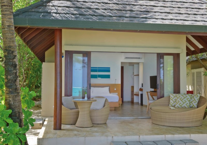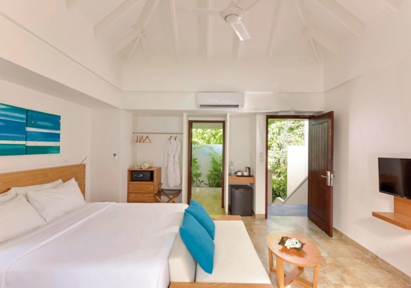 Ihr wählt aus Bungalow Superior (ca. 40 qm), Superior Beach Room (ca. 41 qm) und Superior Vista Zimmern. Markant sind King-Size-Bett, Klimaanlage und Ventilator, dazu Safe, TV, WLAN sowie Wasserkocher für Kaffee- und Tee-Zubereitung. Ein halb offenes Bad bringt Licht und Luft, die möblierte Terrasse oder der Balkon erweitert den Raum. Highlight: Ausgewählte Kategorien mit direktem Strandzugang.