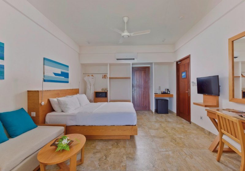 • Klimaanlage • Balkon (je nach Zimmerkategorie) • Kühlschrank • Haartrockner • Kochnische • Sitzecke (je nach Zimmerkategorie) • Mikrowelle • Minibar (gegen Gebühr) • Safe (kostenfrei) • Meerblick (je nach Zimmerkategorie) • Schlafsofa • Kaffee-/Teezubereiter • Terrasse • Fernseher • Ventilator • WiFi (kostenfrei) • Balkon oder Terrasse • Lagunenblick • Strandblick • Holz/Parkett