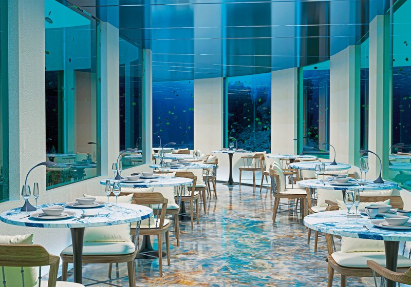 • Unterwasser-Dinner: Restaurant unter der Wasserlinie setzt einen eindrücklichen Akzent.
