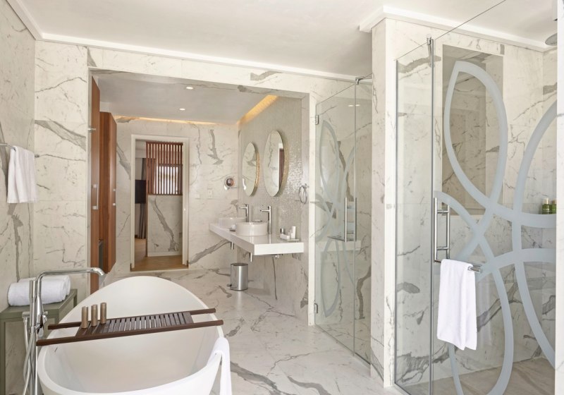 Im Bad findet Ihr Dusche, teils Badewanne oder Außendusche, dazu WC, Bademantel und Haartrockner. Klimaanlage und Ventilator sorgen für das richtige Klima; Minibar, Safe, TV, Wasserkocher und Espressomaschine liefern Komfort. Ausgewählte Kategorien verfügen über Privatpool oder Whirlpool, eine Variante bietet zwei Schlafzimmer auf zwei Etagen. Highlight: Direkter Wasser- oder Strandzugang macht jeden Schritt sinnvoll.