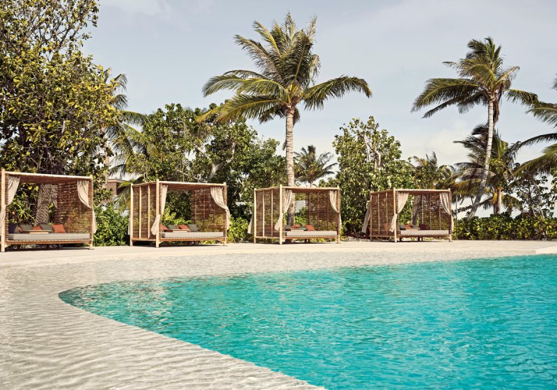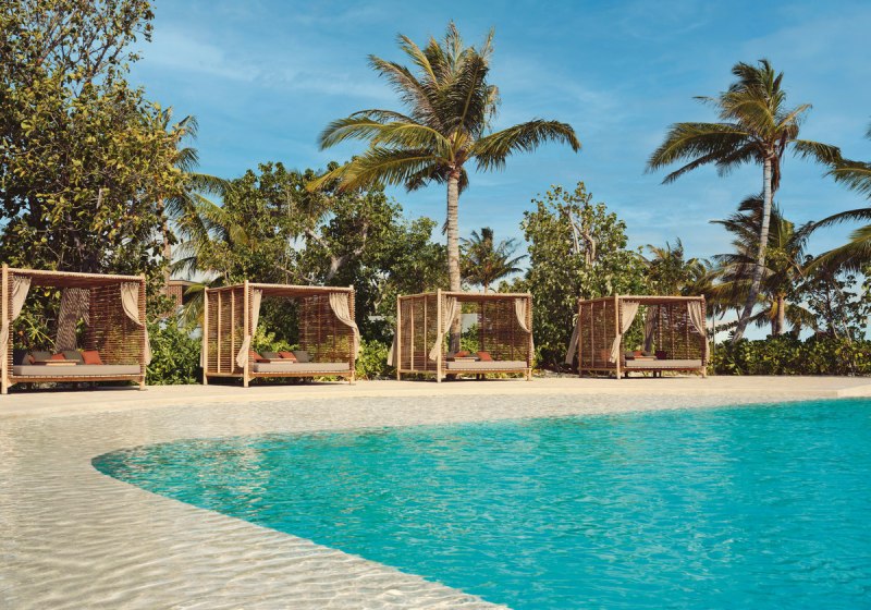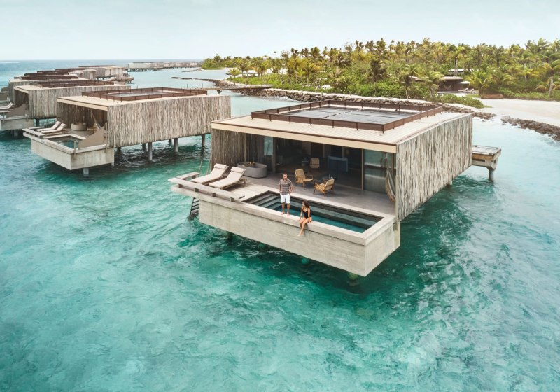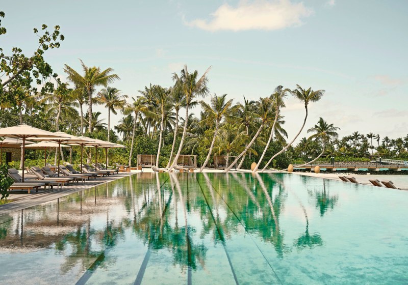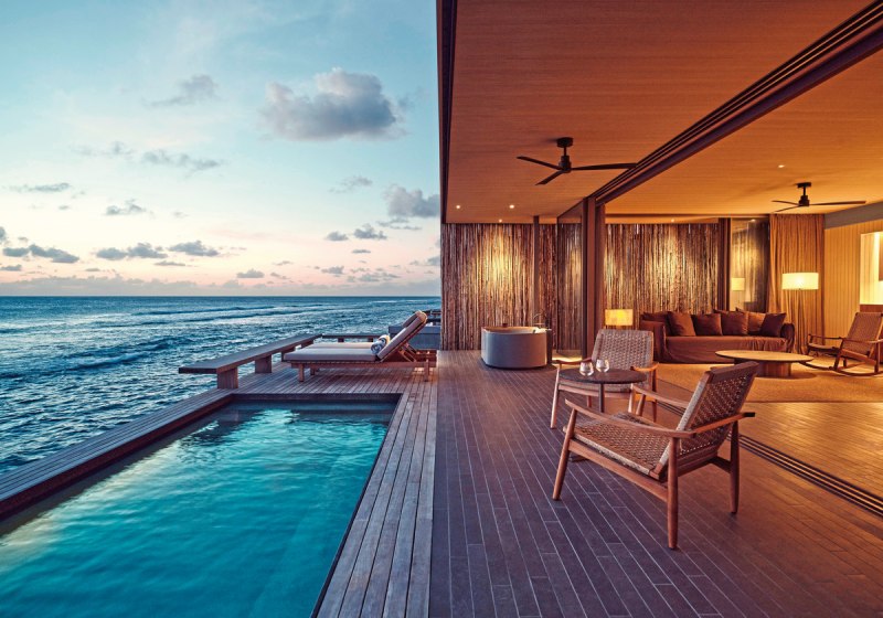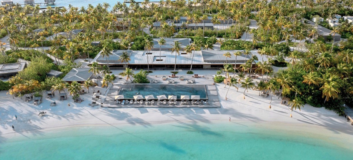 Die Infrastruktur ist umfangreich und klar organisiert: 90 Poolvillen, zwei Aussenpools mit Infinity-Charakter, Liegen, Sonnenschirme und Strand-Cabanas. WLAN steht im gesamten Resort bereit. Services wie Ärzteteam auf Abruf, Wäsche- und Bügelservice sowie Turn-Down-Service strukturieren den Aufenthalt verlässlich.