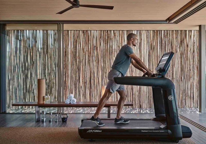 Das Fitnessstudio ist 24 Stunden geöffnet, sodass Ihr Training und Tagesablauf frei takten könnt. Auf Wunsch begleitet Euch ein Personal Trainer. Wer sanfter starten will, wählt Yoga-Einheiten und ergänzt mit einem lockeren Stretching vor dem Meer.