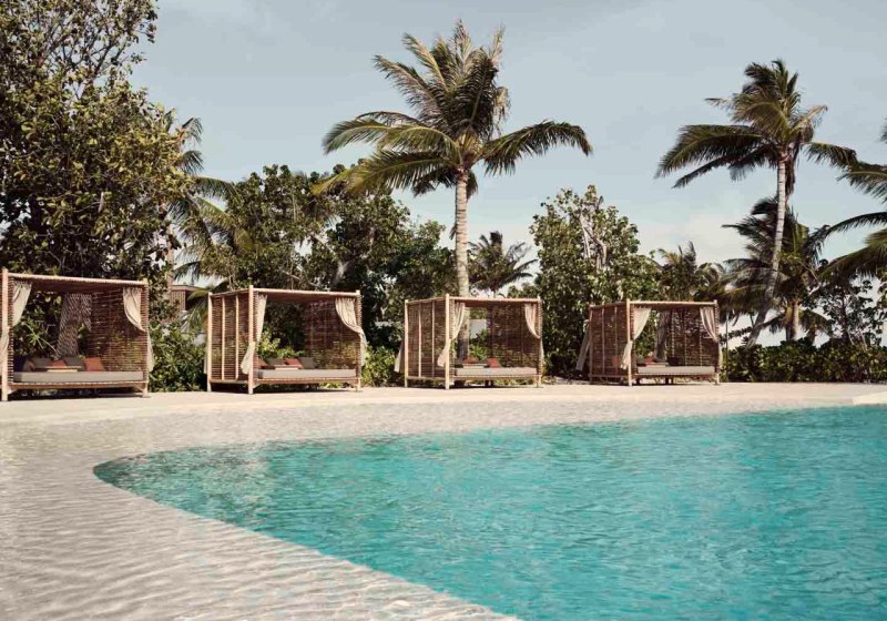 • Strandkomfort: Cabanas, Liegen und Schirme strukturieren entspannte Strandstunden.