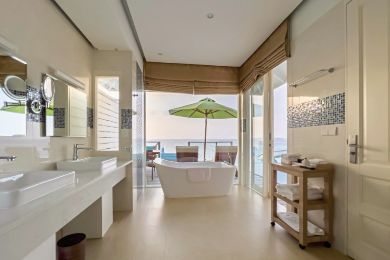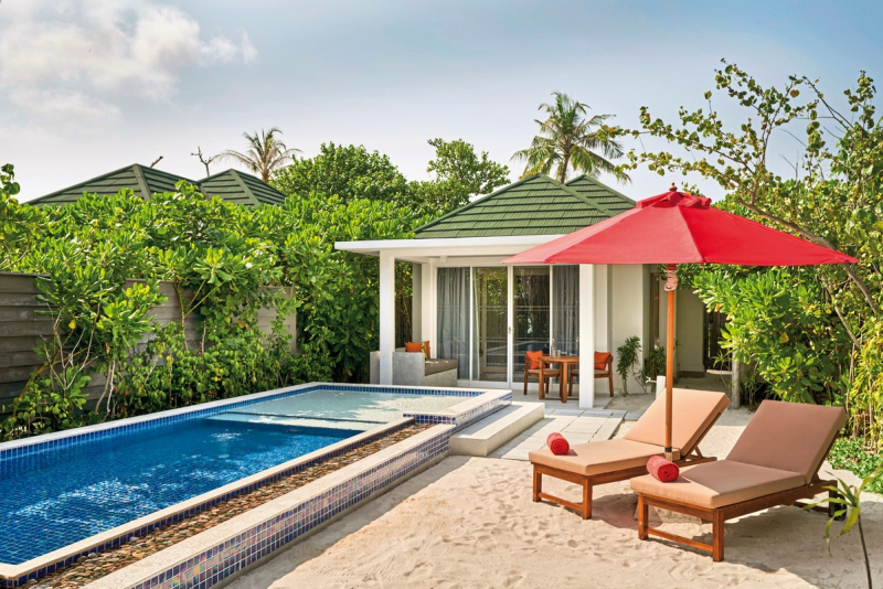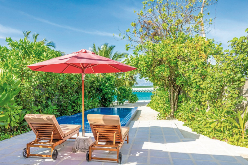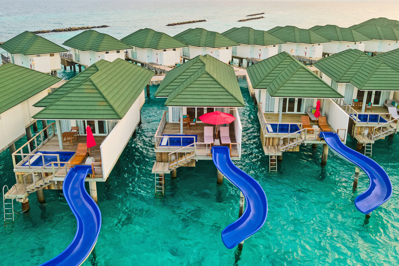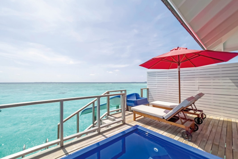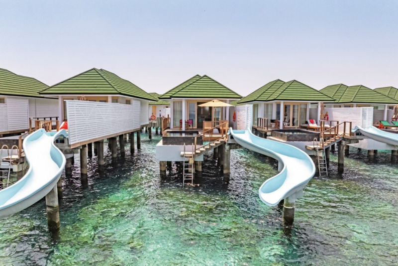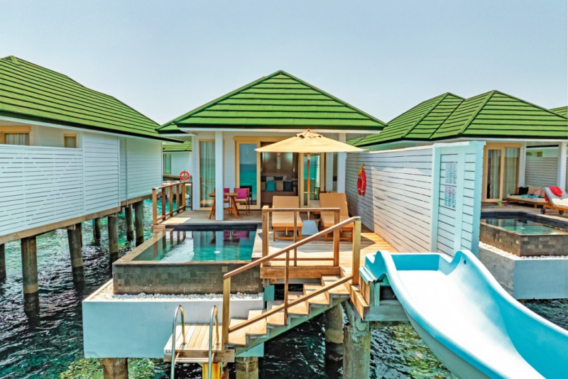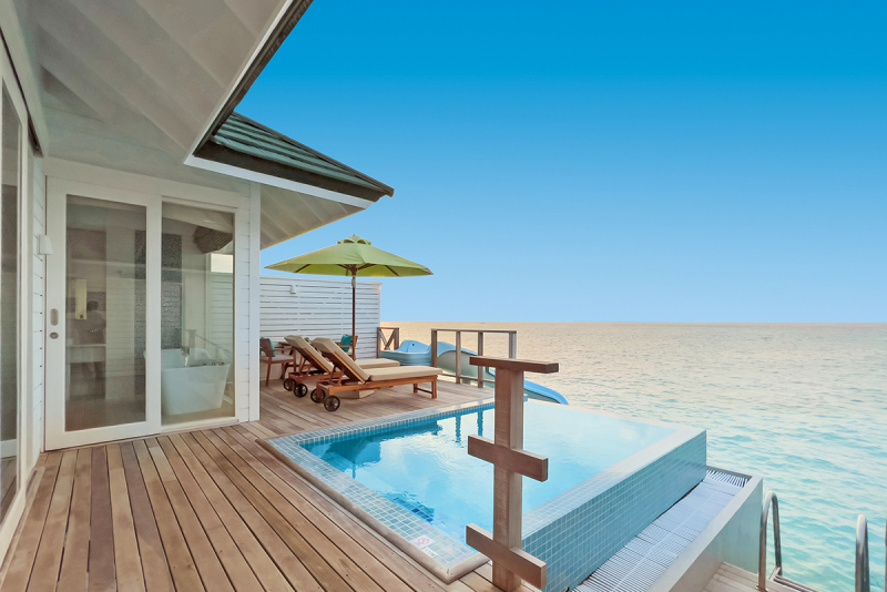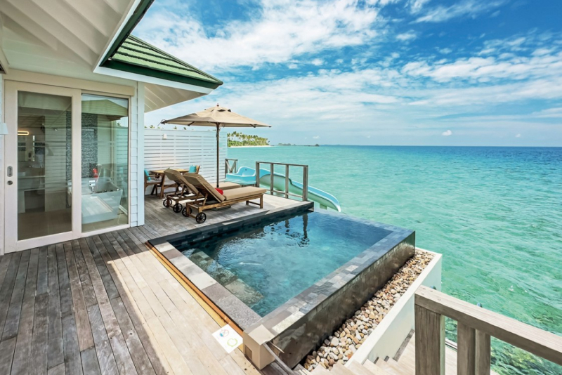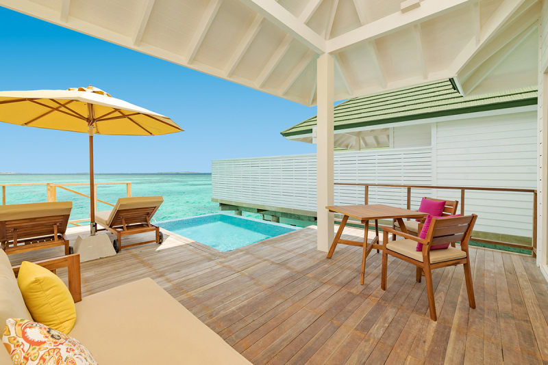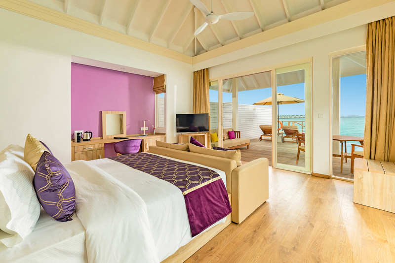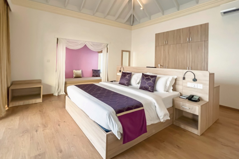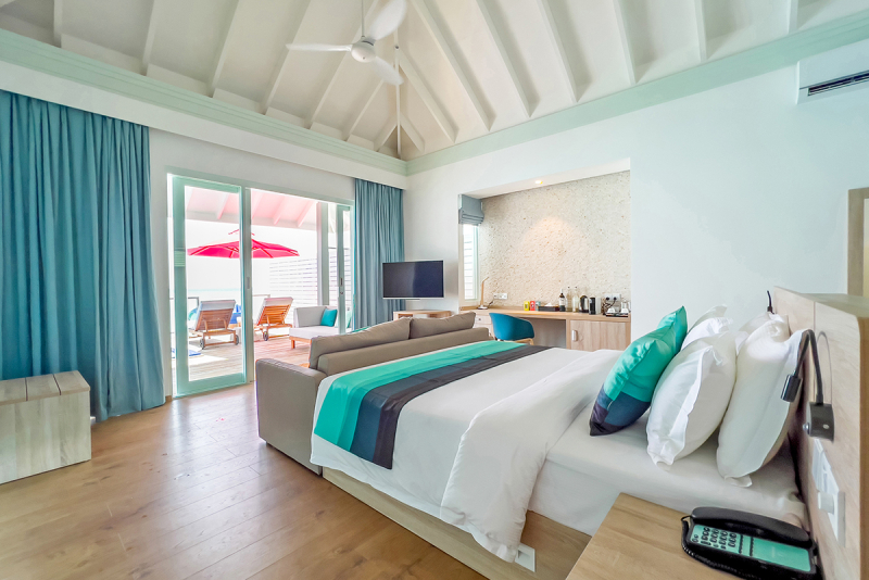 Das Hotel bietet verschiedene Zimmerkategorien, darunter Wasservillen mit eigenem Pool und direktem Lagunenzugang, und Strandvillen mit Direktzugang zum Strand. Alle Zimmer sind komfortabel ausgestattet mit Dusche/WC, Bügelbrett und Bügeleisen, Deckenventilator, Sat.-TV und Telefon. Zudem verfügen alle Zimmer über eine Terrasse oder einen Balkon, und bieten WLAN und Roomservice an.