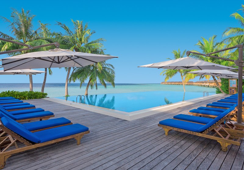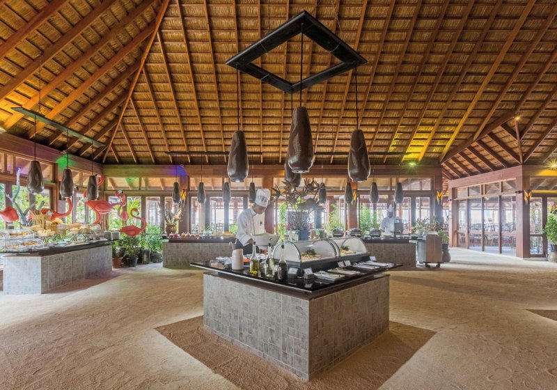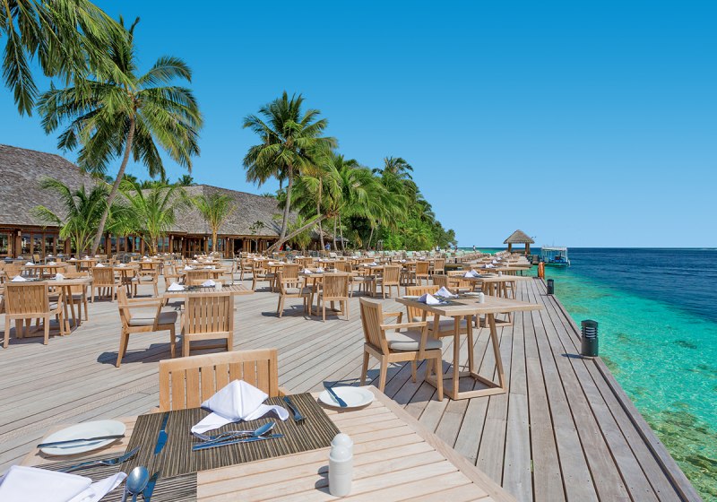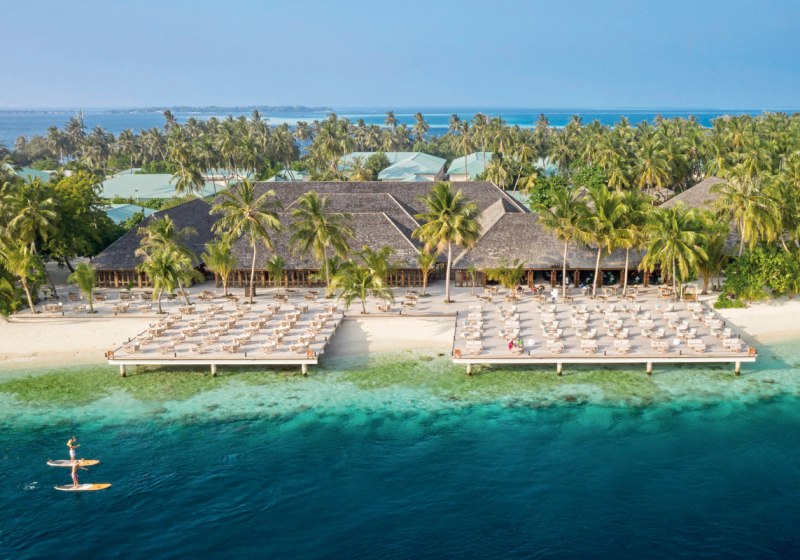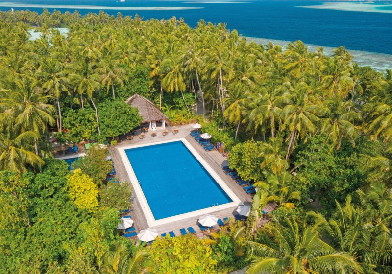 Die Insel im Süd Ari Atoll ist überschaubar dimensioniert und dadurch angenehm orientierungsfreundlich. 184 Villen verteilen sich auf Garten, Strand und Wasser, wodurch Ihr genau den Rückzugsort wählt, der zu Eurem Inseltempo passt. Zwei große Wasserpunkte setzen Akzente: der Hauptpool mit Kinderbecken und der Adults-Only Infinitypool mit weitem Lagunenblick. Abends wird es lebhaft im besten Sinne – Animation und ein wöchentlicher maledivischer Abend holen Euch stilvoll in die Inselkultur. Highlight: Getrennte Bereiche schaffen Klarheit – familiengerecht hier, ruhebetont dort.