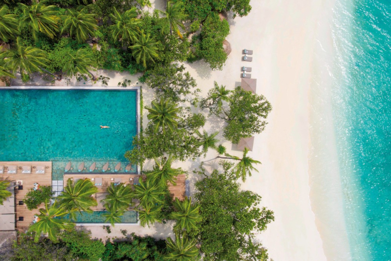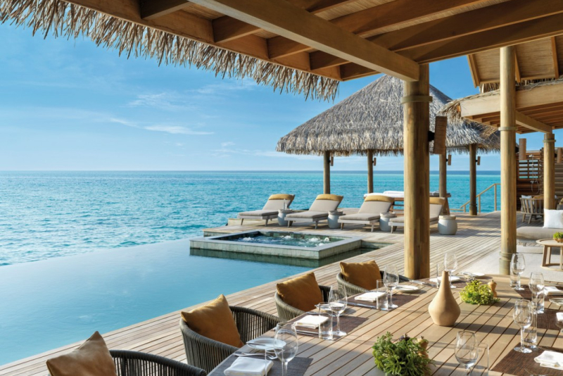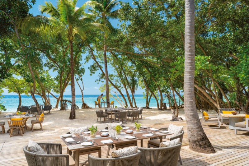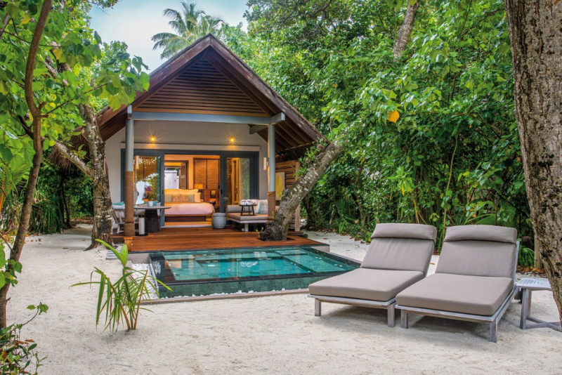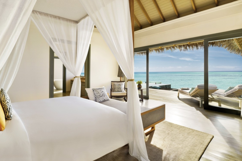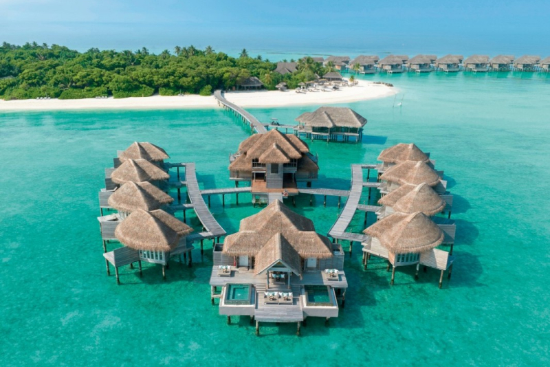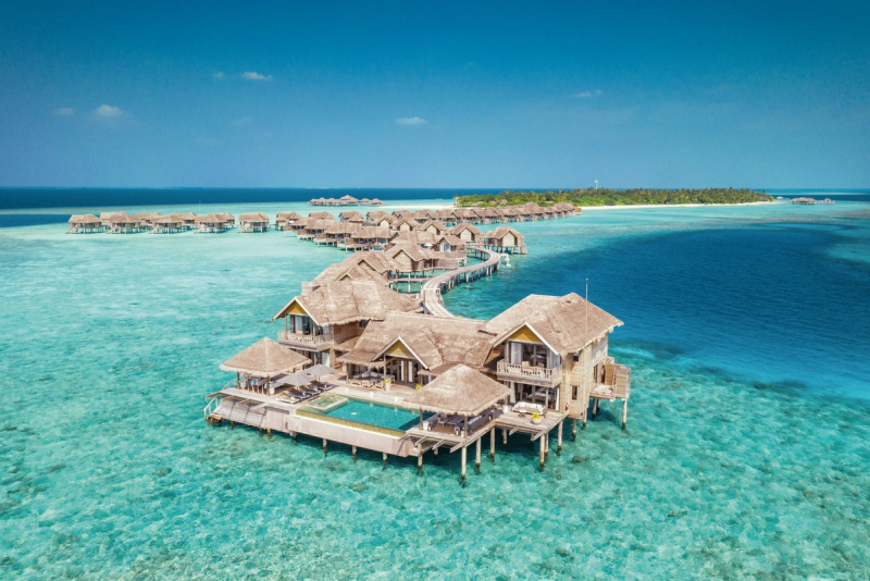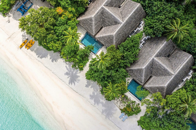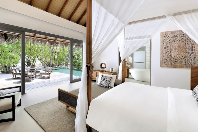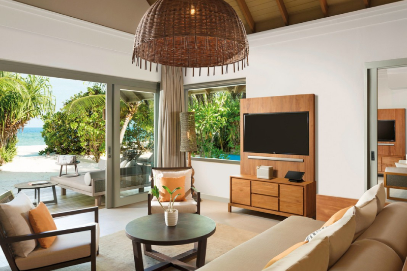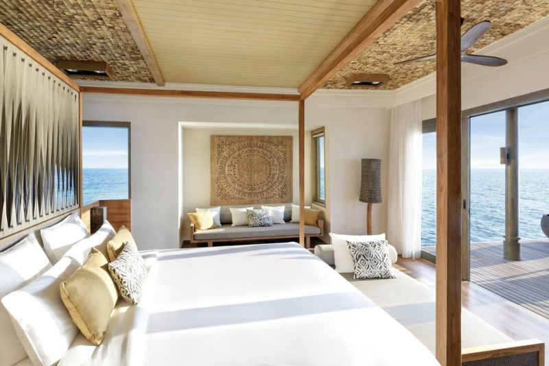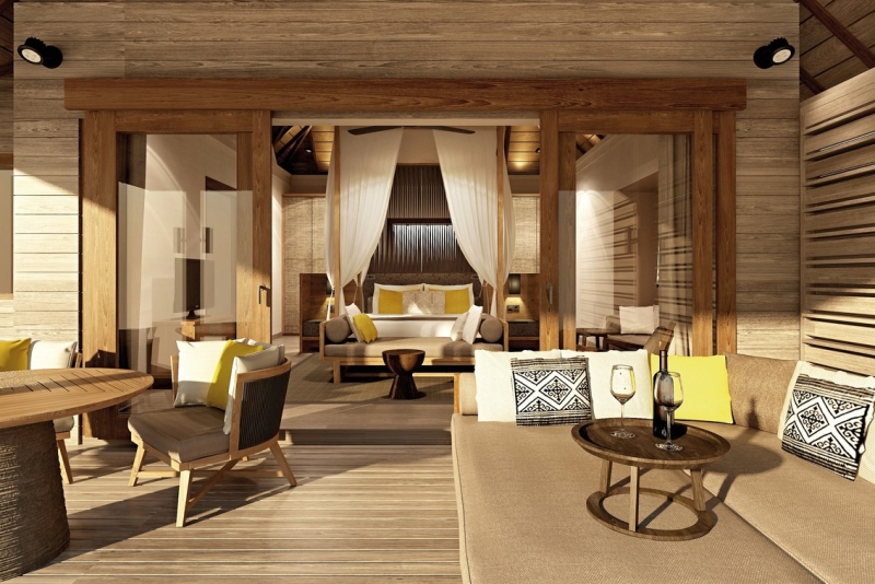 Das Hotel verfügt über verschiedene Zimmer- und Villenkategorien, alle elegant gestaltet und mit modernem Komfort ausgestattet. Alle Unterkünfte verfügen über Annehmlichkeiten wie Klimaanlage, Flachbildschirm-TV, Kaffee-/Teezubereiter, Safe, Minibar und WLAN. Je nach Kategorie haben die Zimmer Terrassen mit privatem Pool, Zugang zur Lagune oder zum Strand und Außenduschen.
