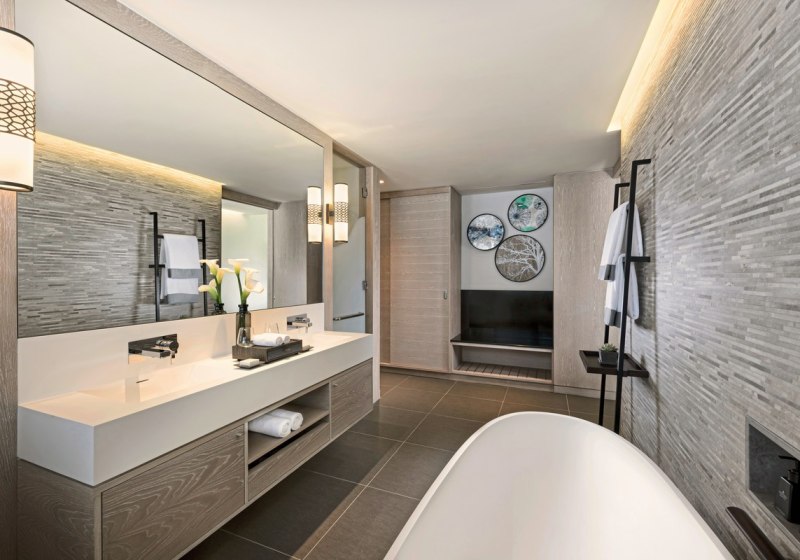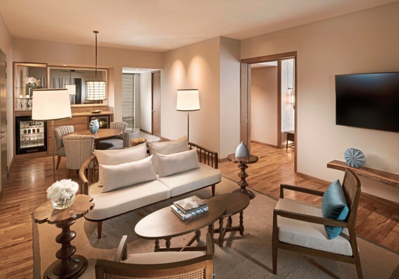 Die Suiten mit rund 115 Quadratmetern besitzen ein separates Schlafzimmer und einen Wohnbereich; WLAN ist hier inkludiert. Ergänzend stehen je nach Kategorie Minibar, Schreibtisch, TV und weitere Annehmlichkeiten bereit. Familien finden passende Optionen mit zusätzlichem Schlafsofa oder Zustellbett. Highlight: Großzügige Grundrisse mit Bad aus Dusche und Wanne.