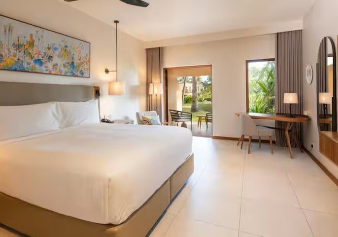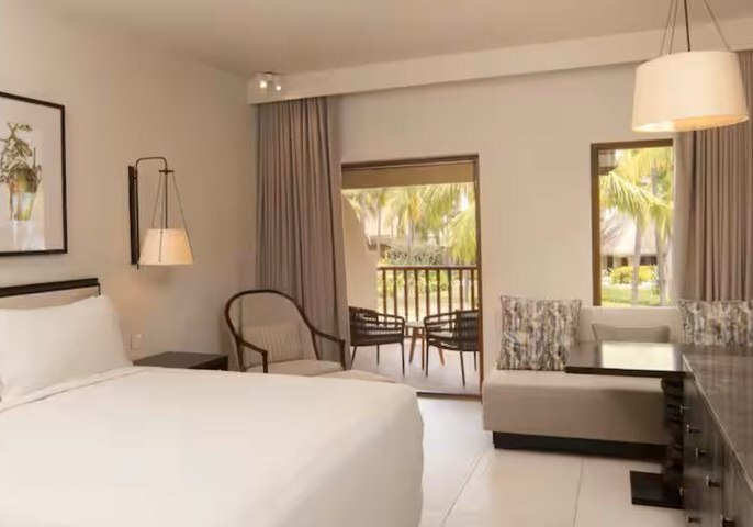 Die Zimmer im Hilton Mauritius Resort & Spa sind auf Klarheit und Funktion ausgelegt: Klimaanlage, Dusche/WC, Föhn, Bademäntel, TV, Telefon, Kaffee-/Teezubereiter und Minibar bilden die Basis. WLAN ist kostenfrei. Alle Zimmer verfügen über Balkon oder Terrasse – mit dem Gefühl, schnell ins Freie zu treten. Highlight: Durchdachte Grundausstattung, draußen wie drinnen nutzbar.