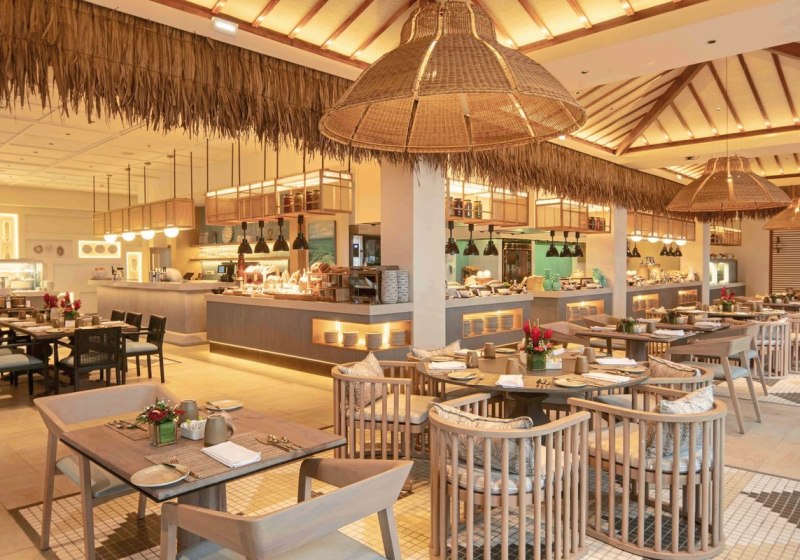 Begleitet wird das von vier Bars, darunter eine Strandbar für den kurzen Weg zwischen Meer und Drink. Das Angebot deckt Frühstück bis Abendessen, mit Optionen von Halbpension über Vollpension bis All-Inclusive. Vegetarische Speisen, Kindermenüs, glutenfreie und Diätgerichte sind vorgesehen.
