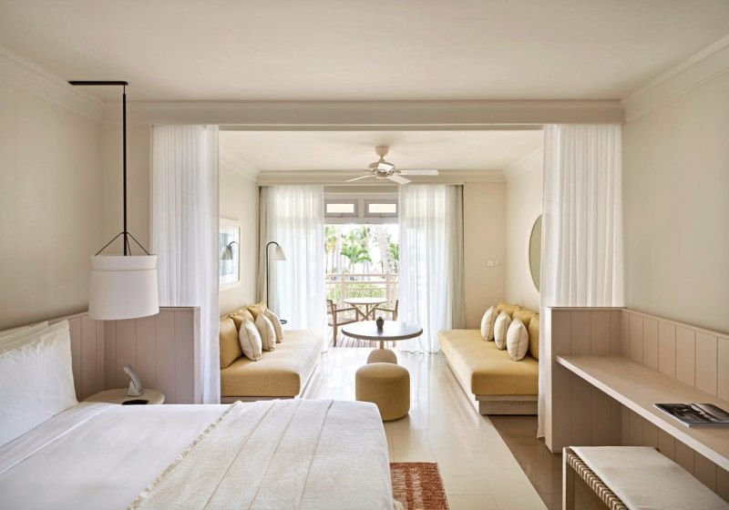 Ihr wohnt in 174 Suiten und 12 Villen. Die Juniorsuiten bieten etwa 60 m² Platz sowie Balkon oder Terrasse. Das Bad ist mit Badewanne, Dusche und WC ausgestattet, dazu Bademantel, Slipper und Föhn. Ein Ankleideraum schafft Ordnung, Safe, Klimaanlage und Ventilator sorgen für ein verlässliches Setting.