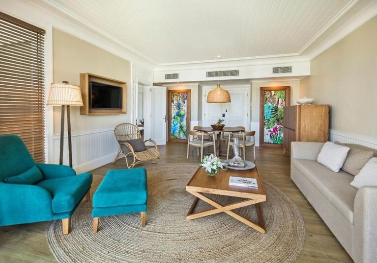 Alle Suiten verfügen über Föhn, Safe, Kaffee-/Teezubereiter und Minibar, dazu einen möblierten Balkon oder eine Terrasse mit Gartenblick. Gegen Aufpreis bucht Ihr Meerblick oder Beachfront. Ein Butler-Service rundet das Setup ab, wahlweise für entspannte Strandtage oder aktive Ausflüge geplant. Highlight: Optionaler Meerblick oder Beachfront für den direkten Horizont.