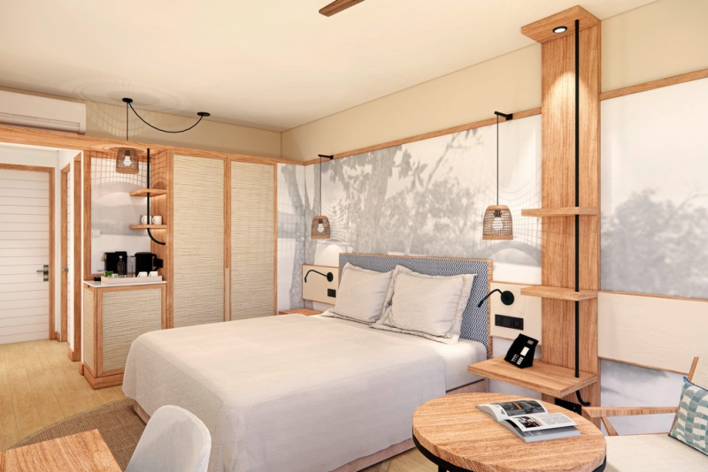 Das Hotel hat 100 Zimmer, verteilt auf Gebäude mit drei Stockwerken. Sie haben die Wahl zwischen Doppelzimmern zur Gartenseite, Standard-Zimmern zur Bergseite und Superior-Zimmern mit Meerblick. Alle Einheiten sind modern und elegant ausgestattet. Die Farben Weiß und Türkis setzen schöne Kontraste zu warmem Holz. In Ihrem Zimmer steht WLAN kostenlos zur Verfügung. Ferner finden Sie einen Deckenventilator und Föhn, Kaffee-und Teezubereiter sowie Sat-TV und Telefon vor. Gegen Gebühr nutzen Sie Safe und Minibar. Alle Doppelzimmer verfügen über eine individuell regulierbare Klimaanlage.Gastronomie und Restaurants