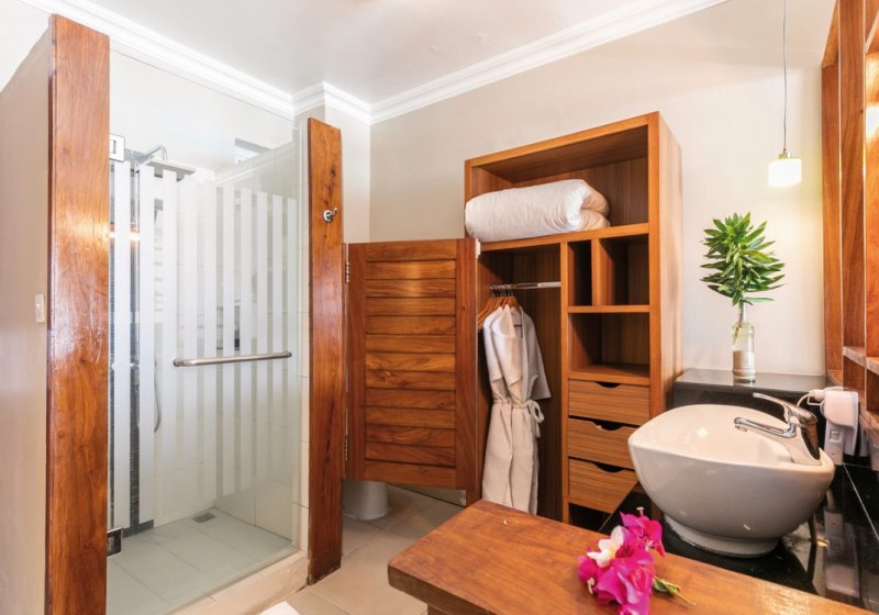 • Badezimmer Offenes Bad im Zimmer, Dusche, Haartrockner