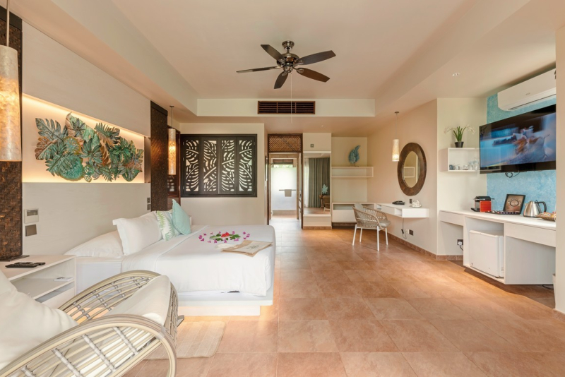 Die 28 geräumigen Zimmer des Hotels sind elegant im inseltypischen Stil mit vielen Naturmaterialien eingerichtet. Sie unterteilen sich in Standard und Superior Doppelzimmer, die alle mit einer Klimaanlage, einem Flachbild-Fernseher und einem Wasserkocher zur Kaffee- und Teezubereitung ausgestattet sind. Die Superior Zimmer erstrecken sich über eine Wohnfläche von 64 m² und bieten zusätzlich eine Minibar und einen Deckenventilator. Für Familien eignen sich zum Beispiel die Suiten mit einem separaten Schlafzimmer hervorragend und die Unterkünfte mit den romantischen Himmelbetten sind besonders bei Hochzeitsreisenden sehr beliebt. Alle Zimmerkategorien verfügen über einen Balkon oder eine Terrasse. Außerdem sind mehrere Villen mit 2, 3 oder 4 separaten Schlafzimmern und Küche buchbar. Hochwertige, kostenlose Pflegeartikel liegen in sämtlichen Bädern aus. Einige Zimmertypen bieten, zusätzlich zum eigentlichen Badezimmer, eine offene, separate Dusche.Gastronomie / Restaurants