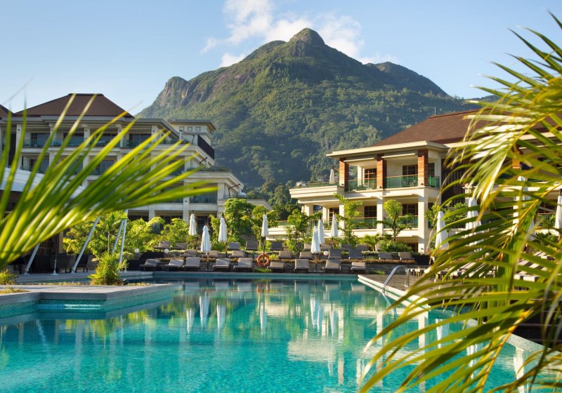 - Riesiger Pool: Größter Swimmingpool der Seychellen mit breiten Sonnenterrassen.