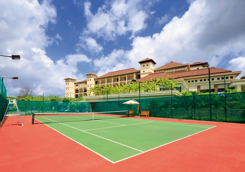 Für Aktive steht ein Fitnessstudio bereit, ergänzt durch Yoga- und Fitnesskurse. Auf dem Tennishartplatz spielt Ihr eine Runde mit Blick in die Gärten. Der weitläufige Pool lädt zu entspannten Bahnen und lockeren Einheiten im Wasser ein.