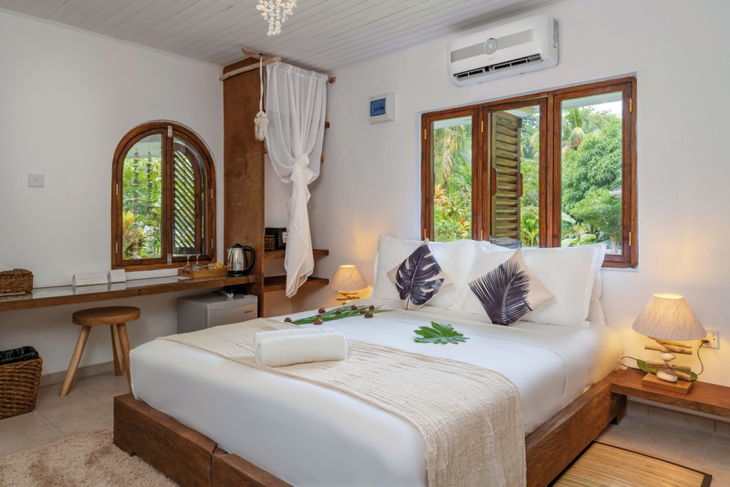 Das Bliss Hotel Praslin verfügt über modern und komfortabel eingerichtete Einzel-, Doppel- und Familienzimmer. Auch Suiten sind verfügbar. Alle Zimmer sind klimatisiert sowie mit Schreibtisch, Sitzbereich, Telefon, TV, kostenloses W-LAN, Safe und Bad ausgestattet. Das Badezimmer bietet Dusche, WC, Haartrockner und Toilettenartikel. Es können Zimmer mit Balkon oder Terrasse oder auch gemütliche Chalets gebucht werden. Es besteht ein Zimmerservice.