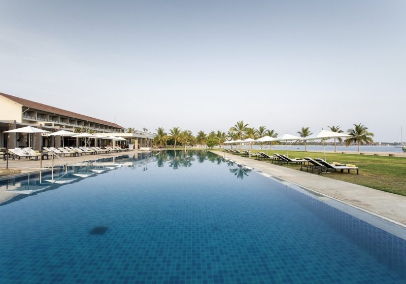 Ihr wohnt direkt am Strand von Passikudah, rund 10 Kilometer südlich von Batticaloa. Die Bucht wirkt ruhig, der Übergang vom Pool zur weiten Sandfläche ist kurz und intuitiv. Damit gelingt Euch ein Tagesrhythmus zwischen Meer, Sonnenterrasse und Spaziergängen entlang des Ufers. Highlight: Direkte Strandlage mit kurzer Distanz von den Zimmern zum Wasser.